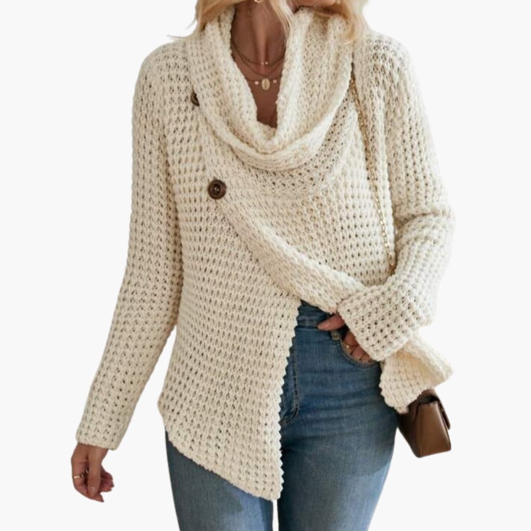 Γυναικείο πλεκτό πουλόβερ με κουμπωτό γιακά κασκόλ