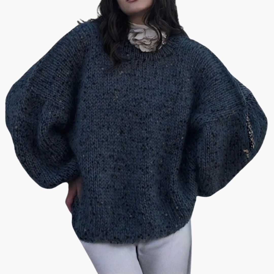 Γυναικείο πλεκτό πουλόβερ με φαρδιά μανίκια και διακοσμητική επιφάνεια