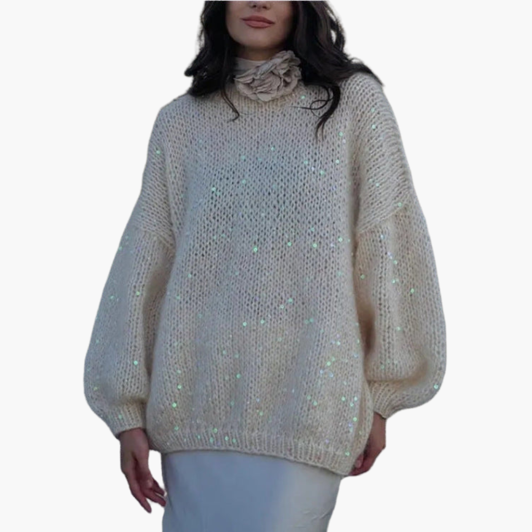 Γυναικείο φαρδύ πουλόβερ με χοντρή πλέξη και ζιβάγκο
