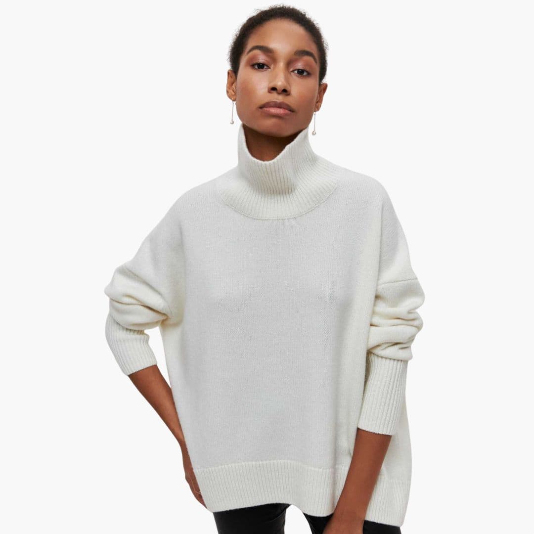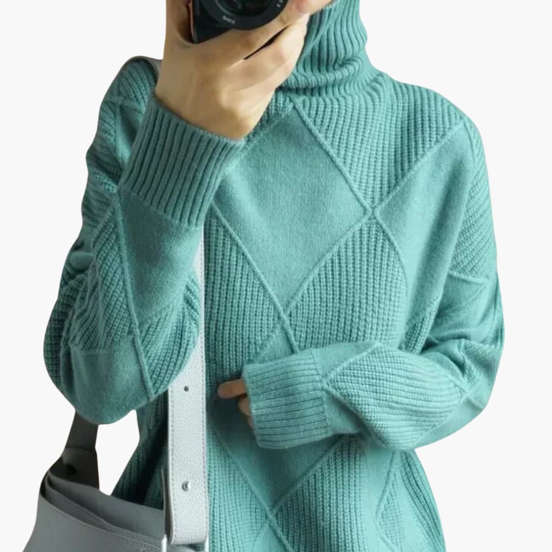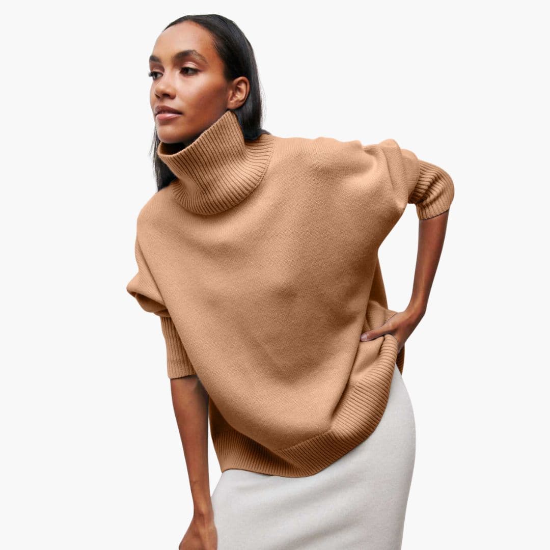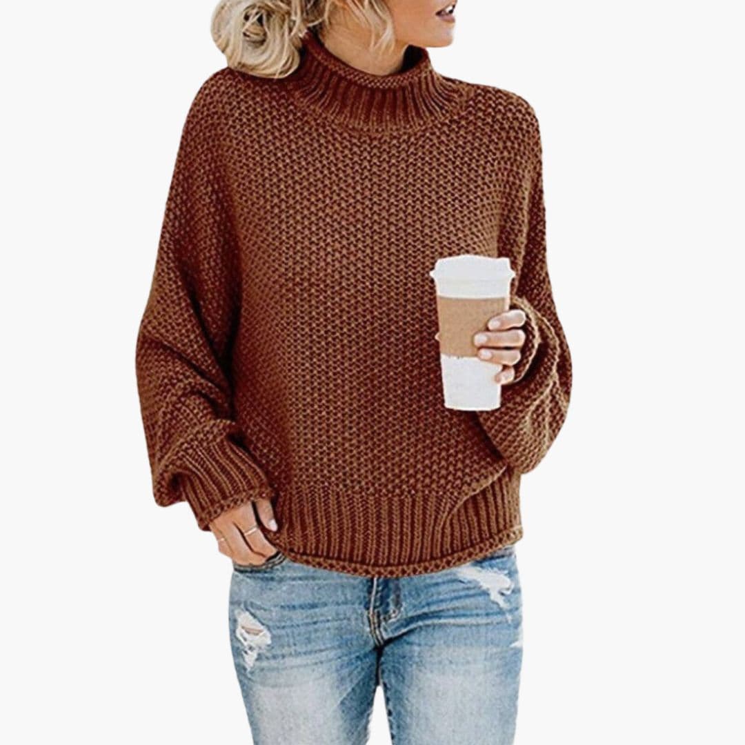 Γυναικείο πλεκτό πουλόβερ με ψηλό γιακά και άνετη εφαρμογή