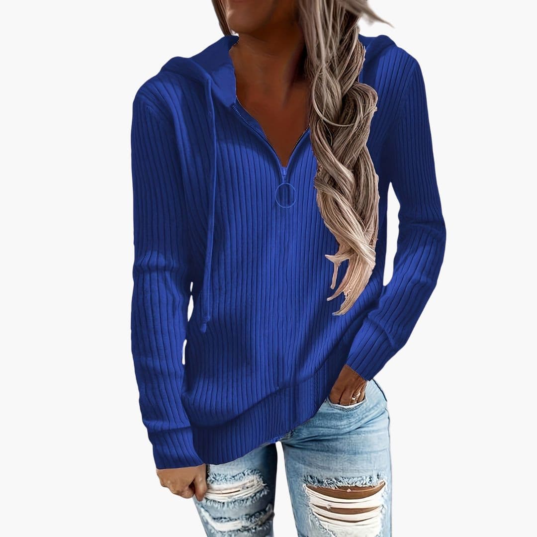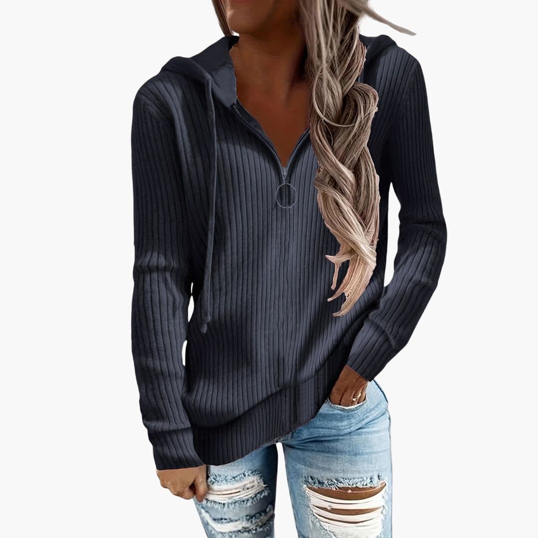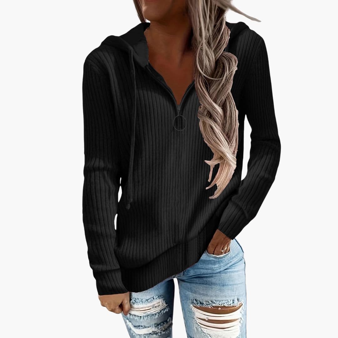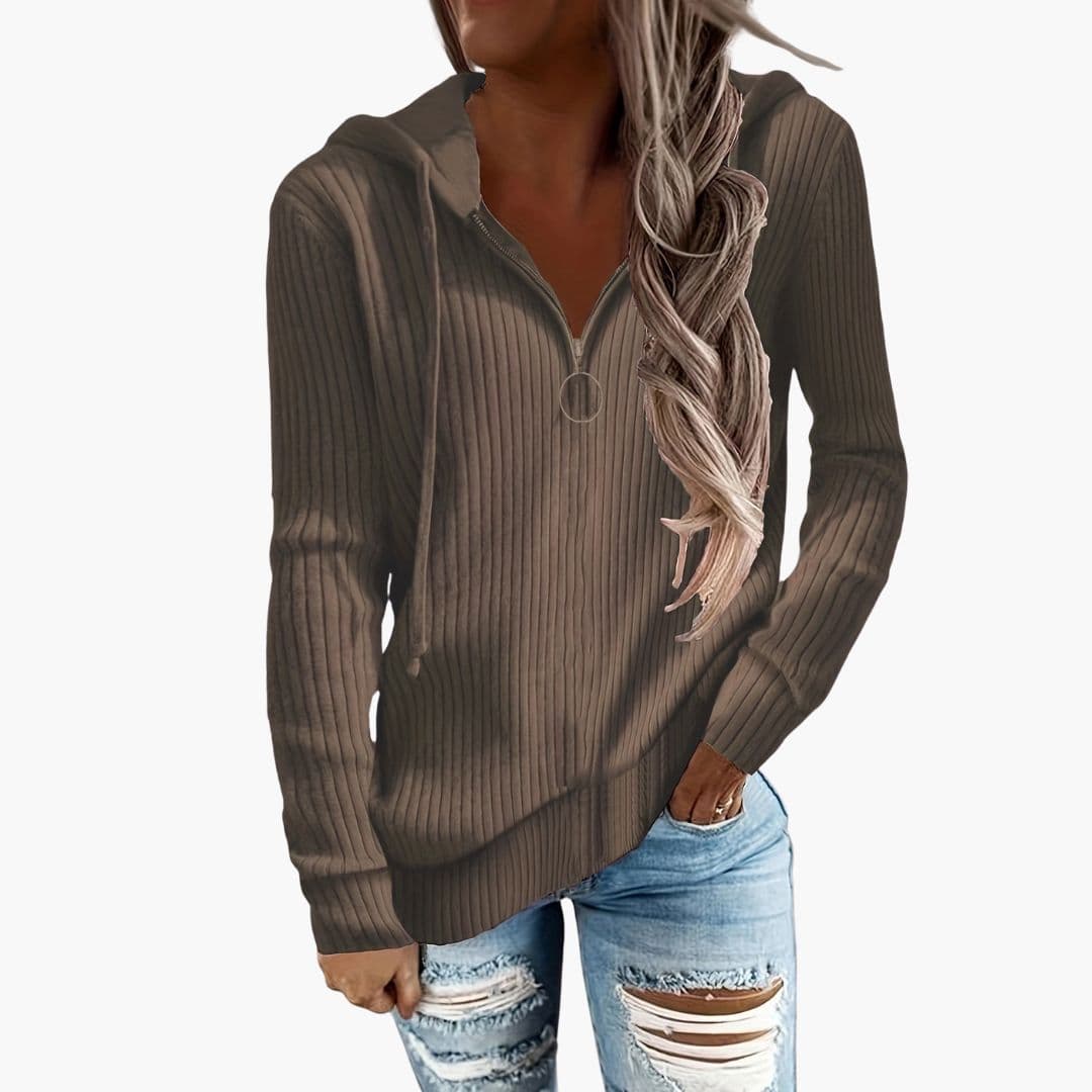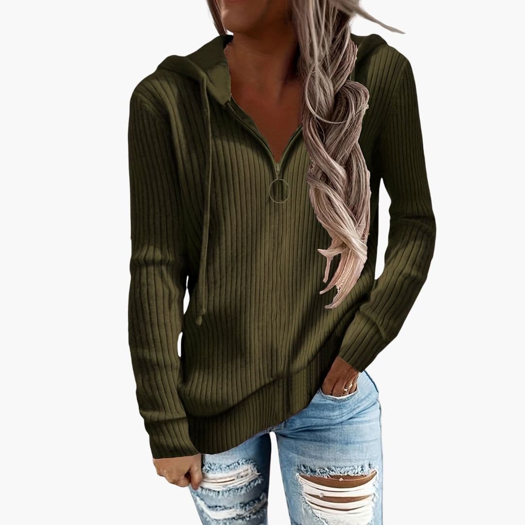 Γυναικείο πλεκτό πουλόβερ με ζιβάγκο και ριμπ τελείωμα