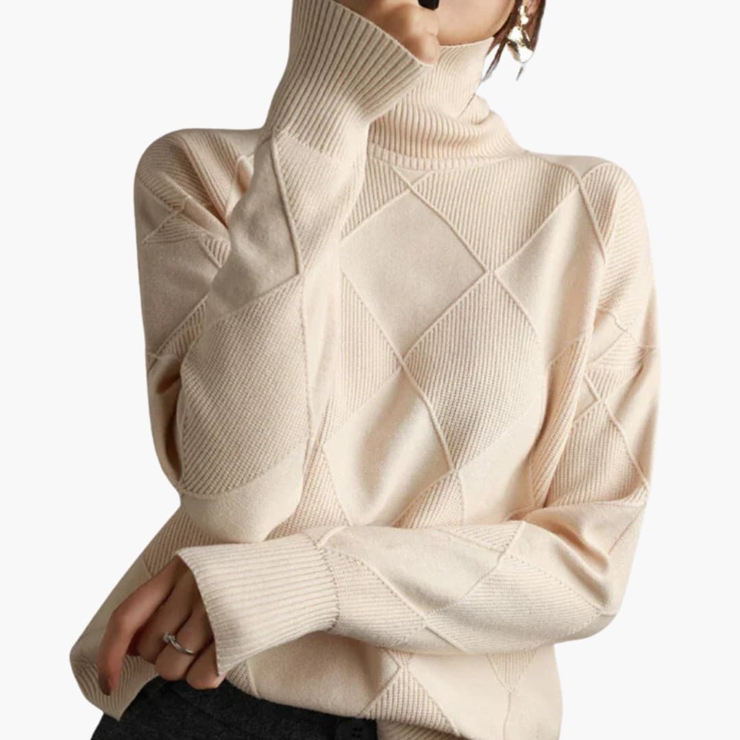 Γυναικείο πλεκτό πουλόβερ με ζιβάγκο και υφή επιφάνειας