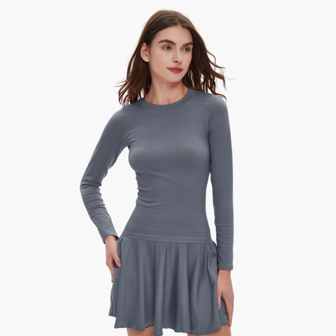 Γυναικείο Φόρεμα με Μακριά Μανίκια και Φούστα με Βολάν