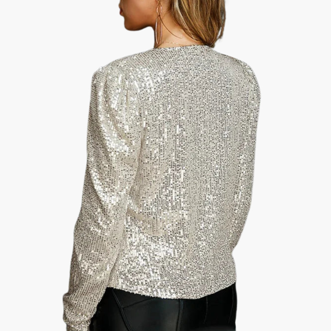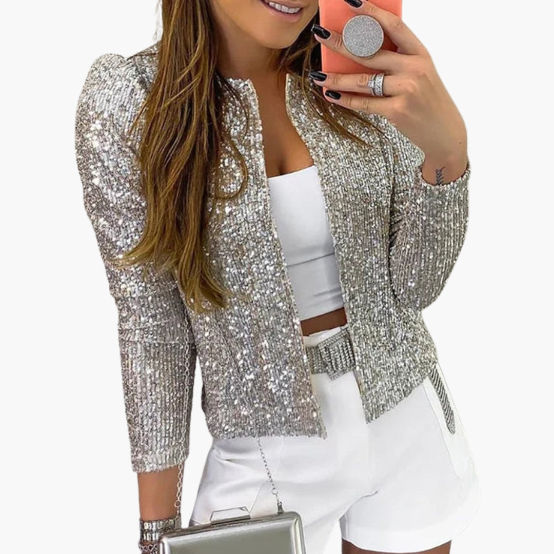 Γυναικείο σακάκι με μακριά μανίκια και επιφάνεια με παγιέτες