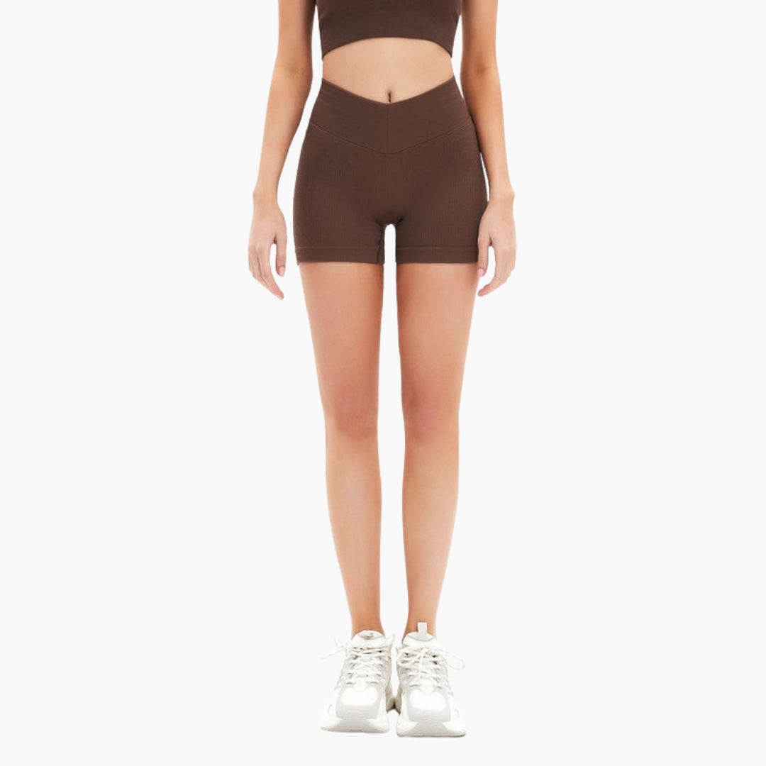 Αθλητικό σορτς με ψηλή μέση και ριμπ ύφανση για γυναίκες