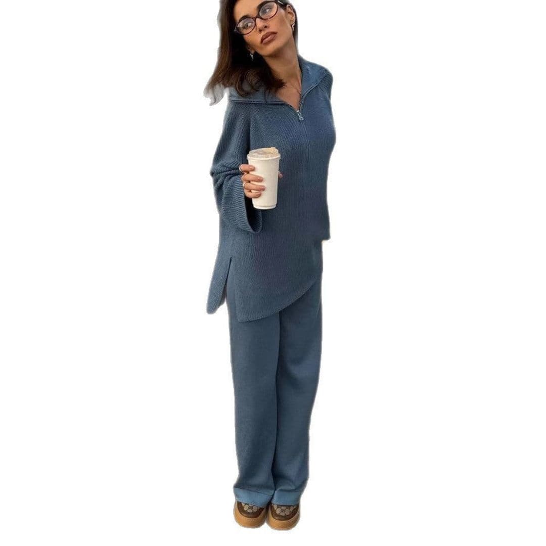 Γυναικείο φαρδύ πουλόβερ με μισό φερμουάρ