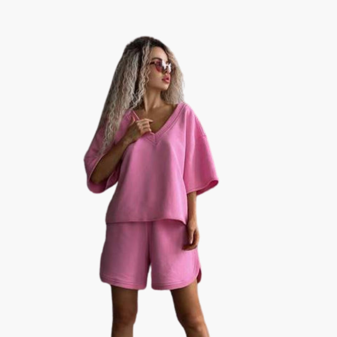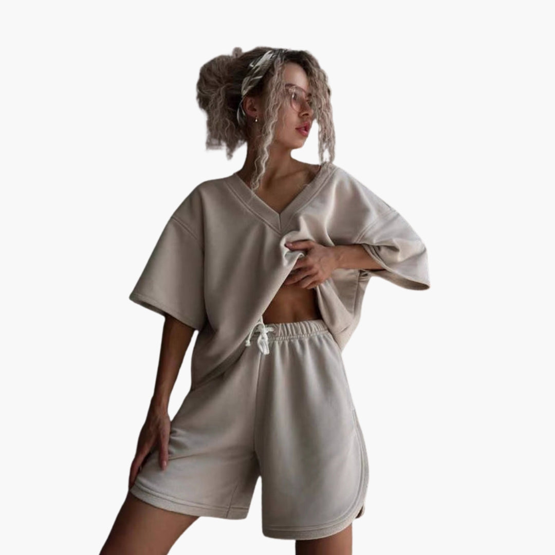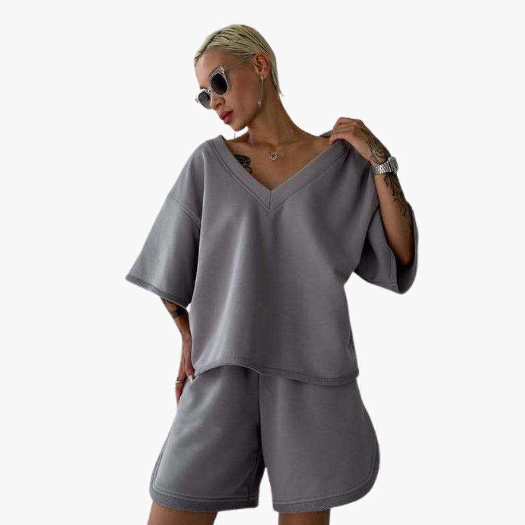 Γυναικείο Αθλητικό Σετ με V-Λαιμόκοψη, Χαλαρό Τοπ και Φαρδιά Σορτς.