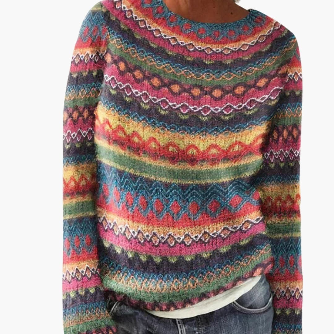 Γυναικείο Πουλόβερ με Γεωμετρικά Σχέδια και Στρογγυλή Λαιμόκοψη