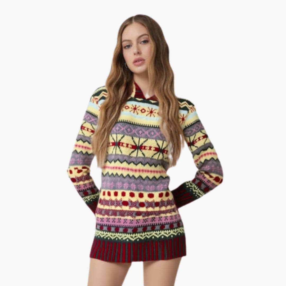 Γυναικείο Πουλόβερ με Νορβηγικό Σχέδιο και Στρογγυλή Λαιμόκοψη