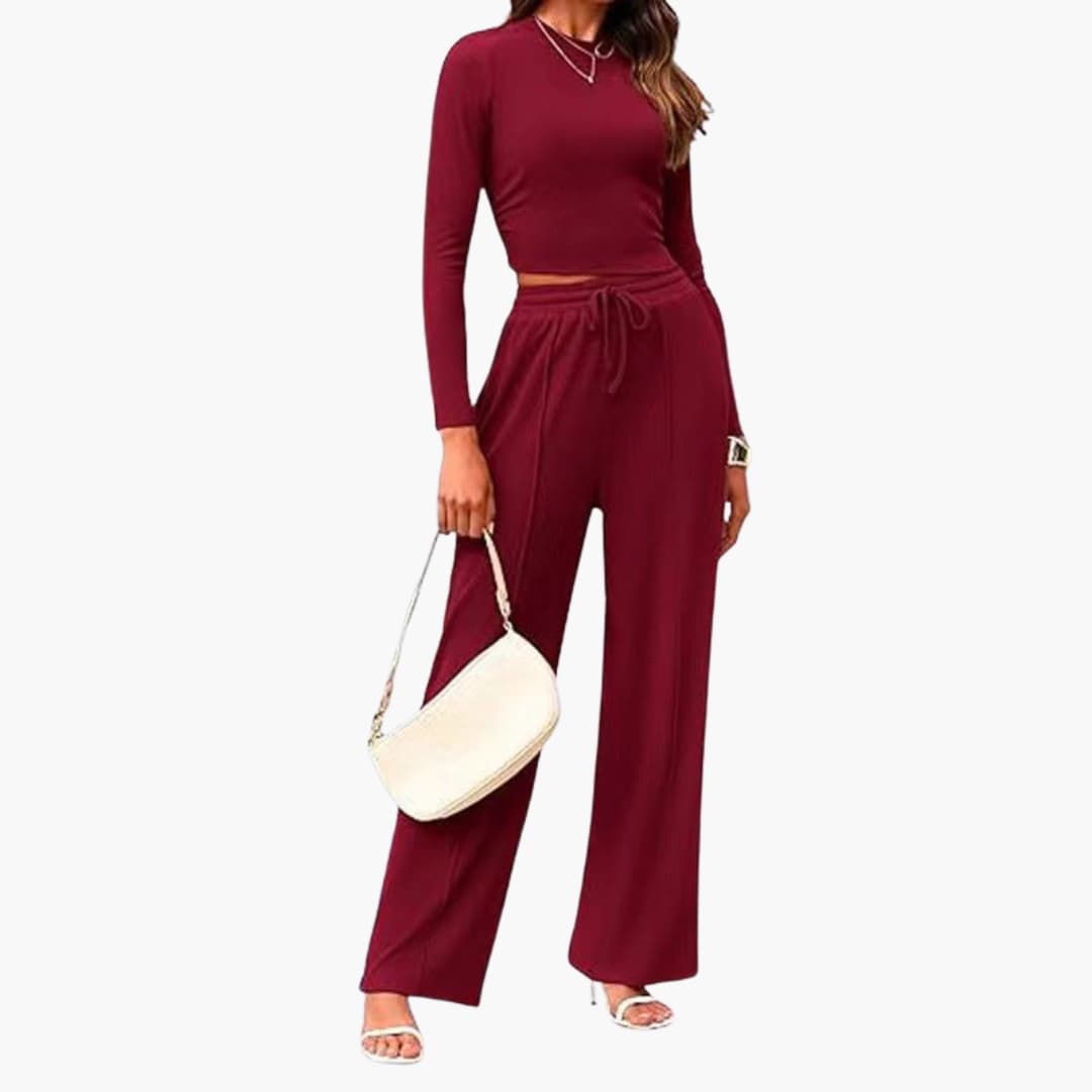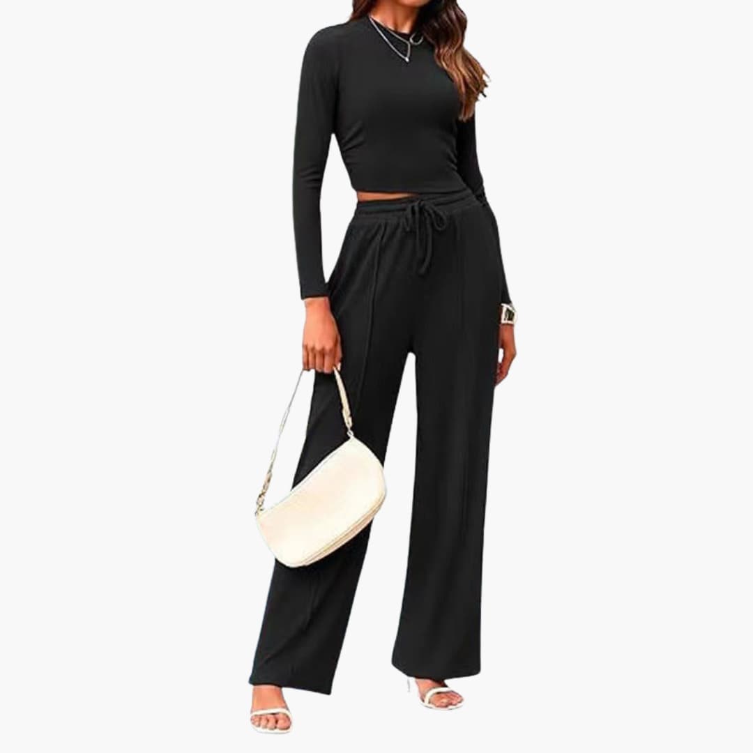 Naisten setti takilla ja leveälahkeisilla housuilla
