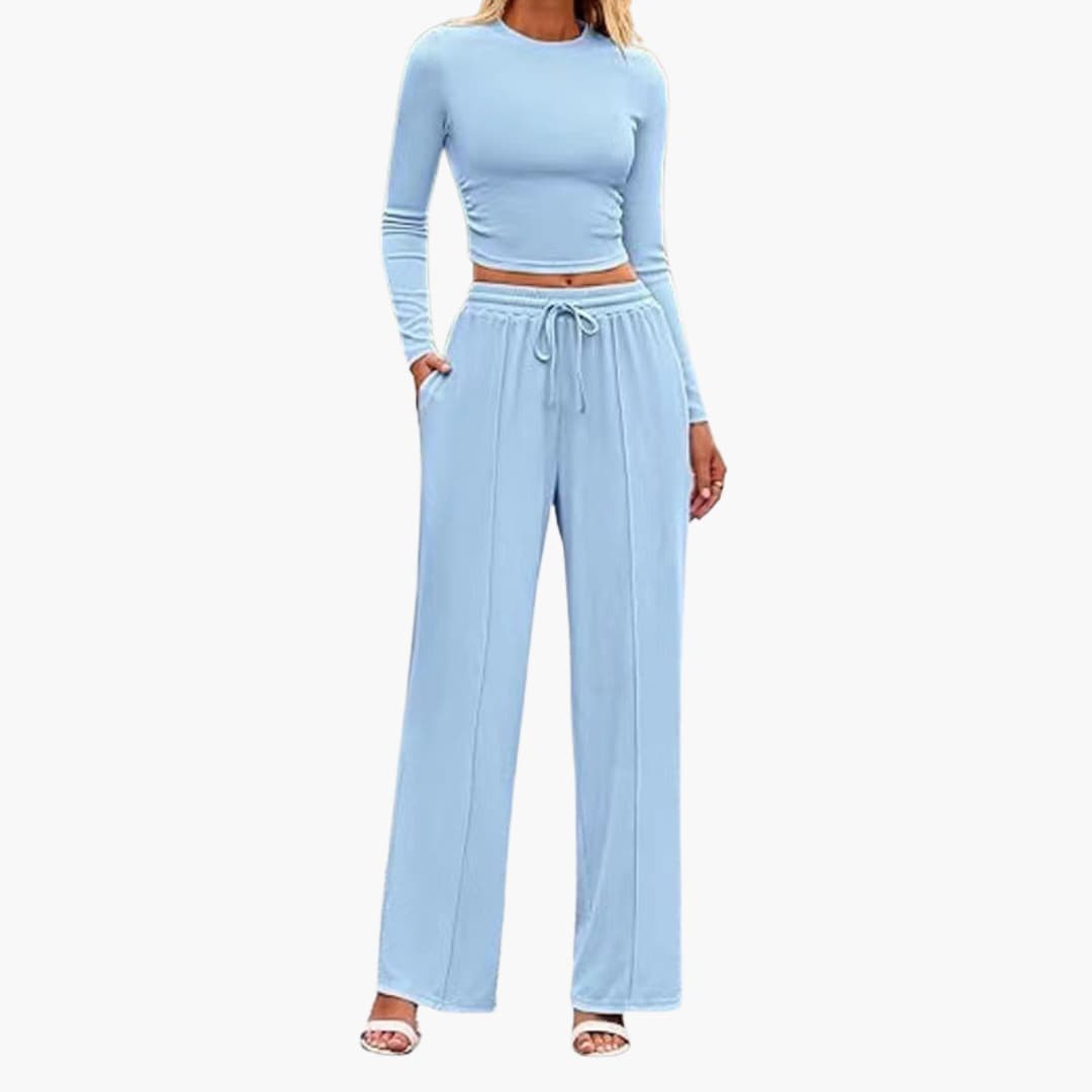 Naisten setti pitkähihnaisella paidalla ja leveälahkeisilla housuilla
