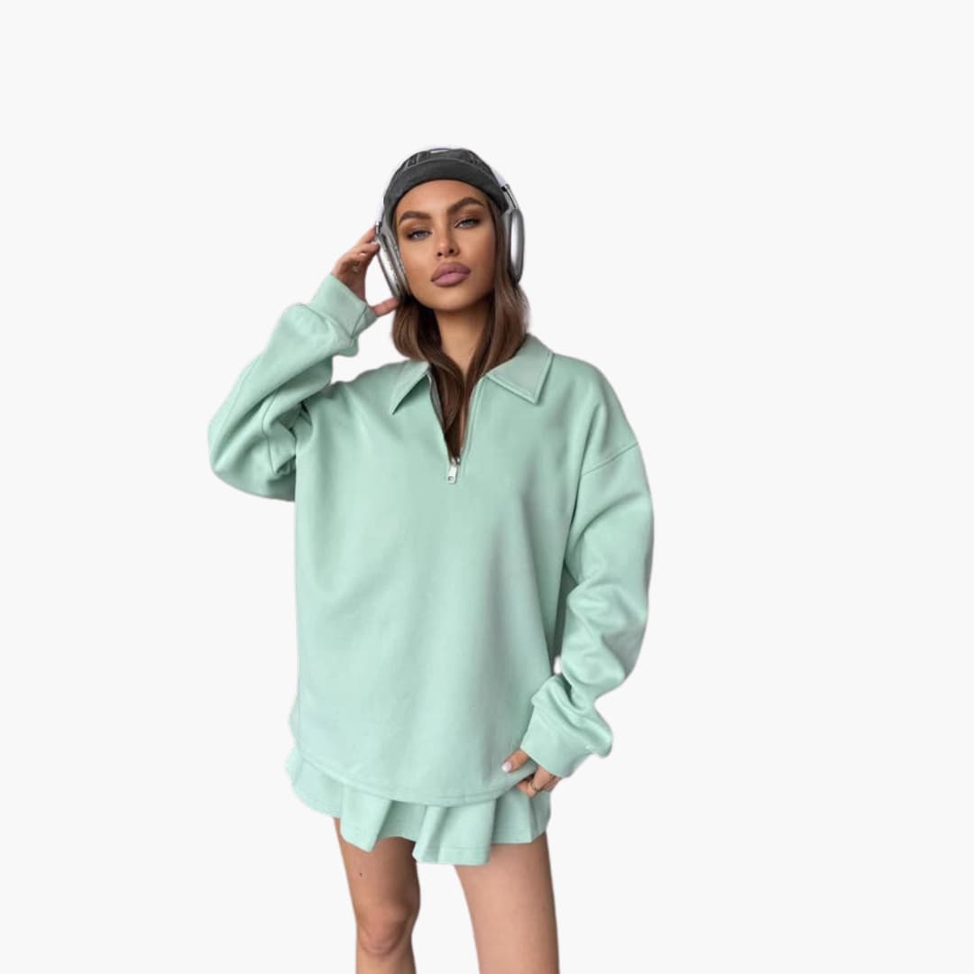 Naisten puolivetoketjullinen pusero pitkillä hihoilla