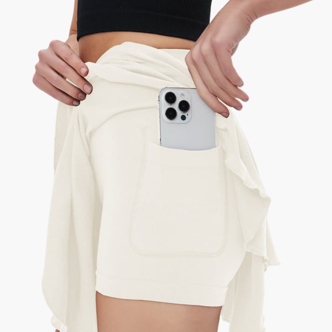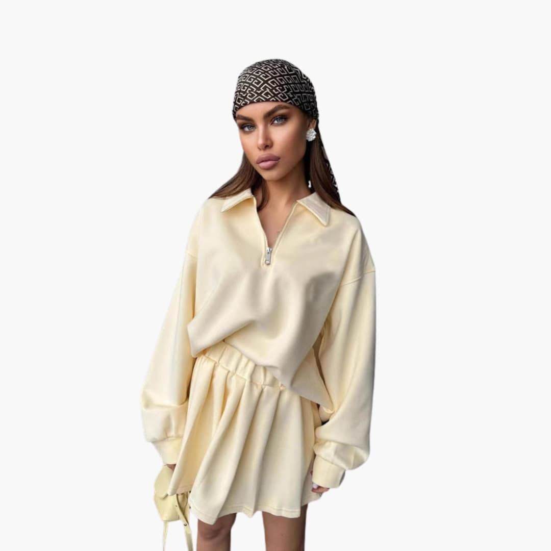 Naisten lyhyt huppari ja vetoketjulliset shortsit joustavalla vyötäröllä