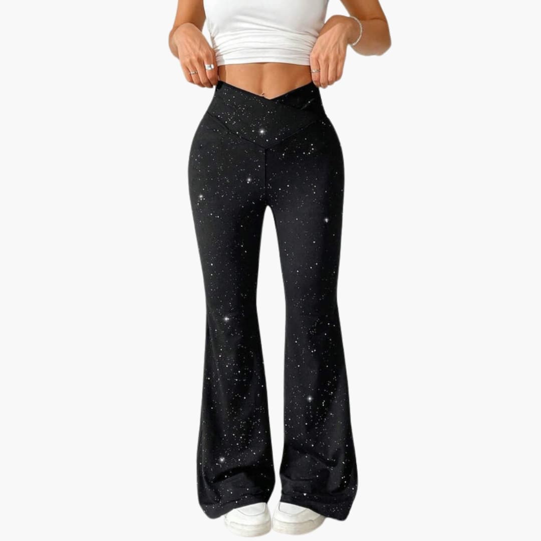 Naisten hohtavat levenevät housut ylellisellä kiillolla retrohenkiseen tyyliin