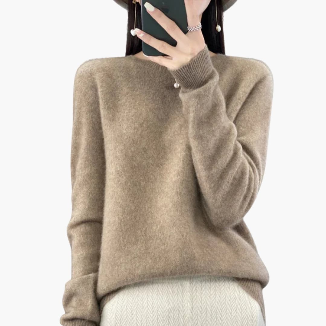 Naisten pyöreäkauluksinen neulepaita pitkillä hihoilla