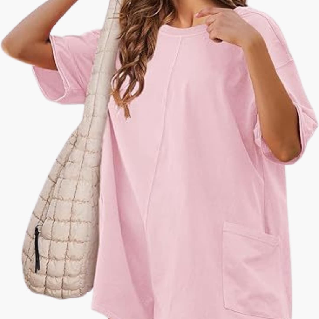 Naisten lyhythihainen t-paitamekko sivutaskuilla