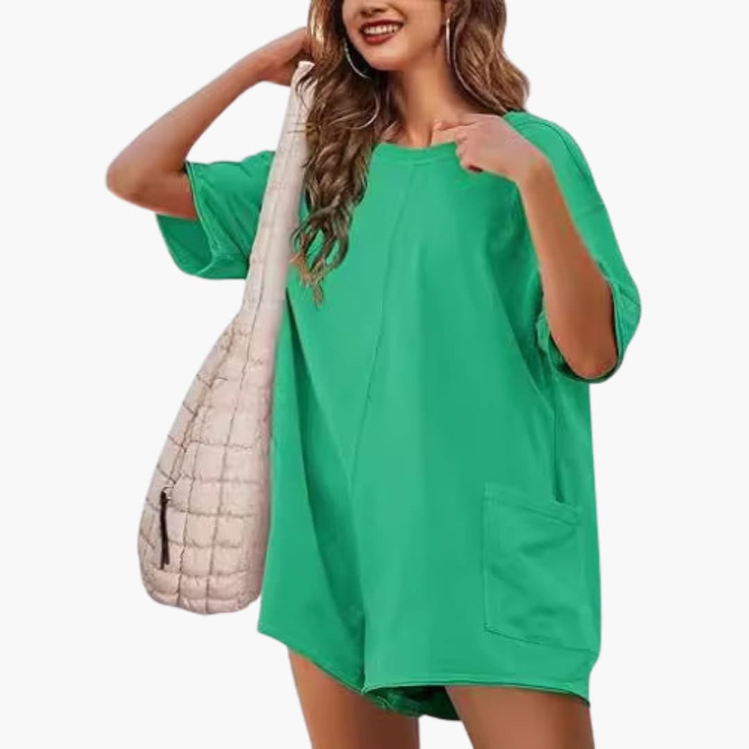 Naisten lyhythihainen setti kiristysnauhalla varustetuilla shortseilla