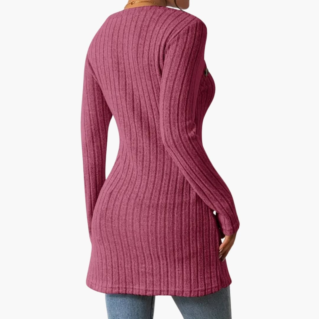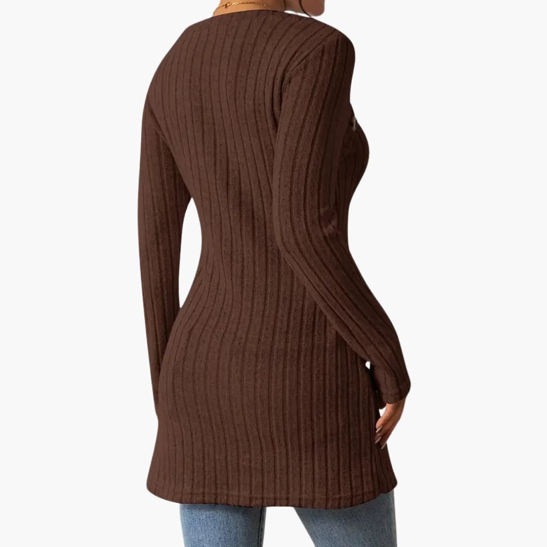 Naisten ribbineulottu paita pitkillä hihoilla