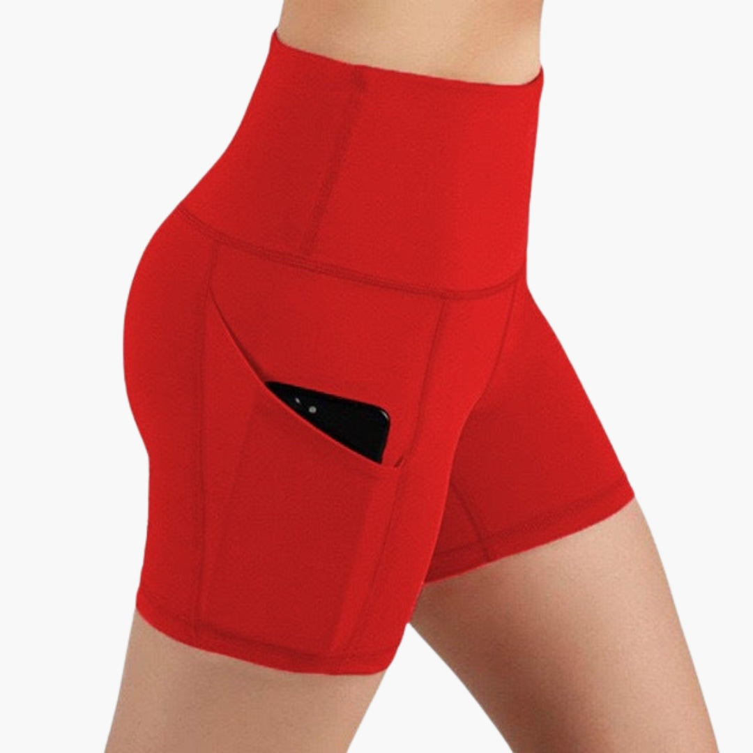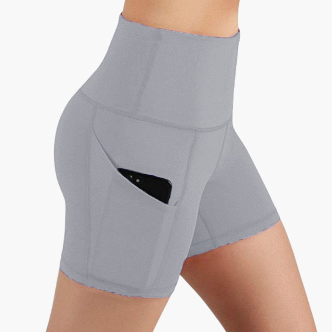Brístí spóirt mná le waist ard agus pócaí taobh.