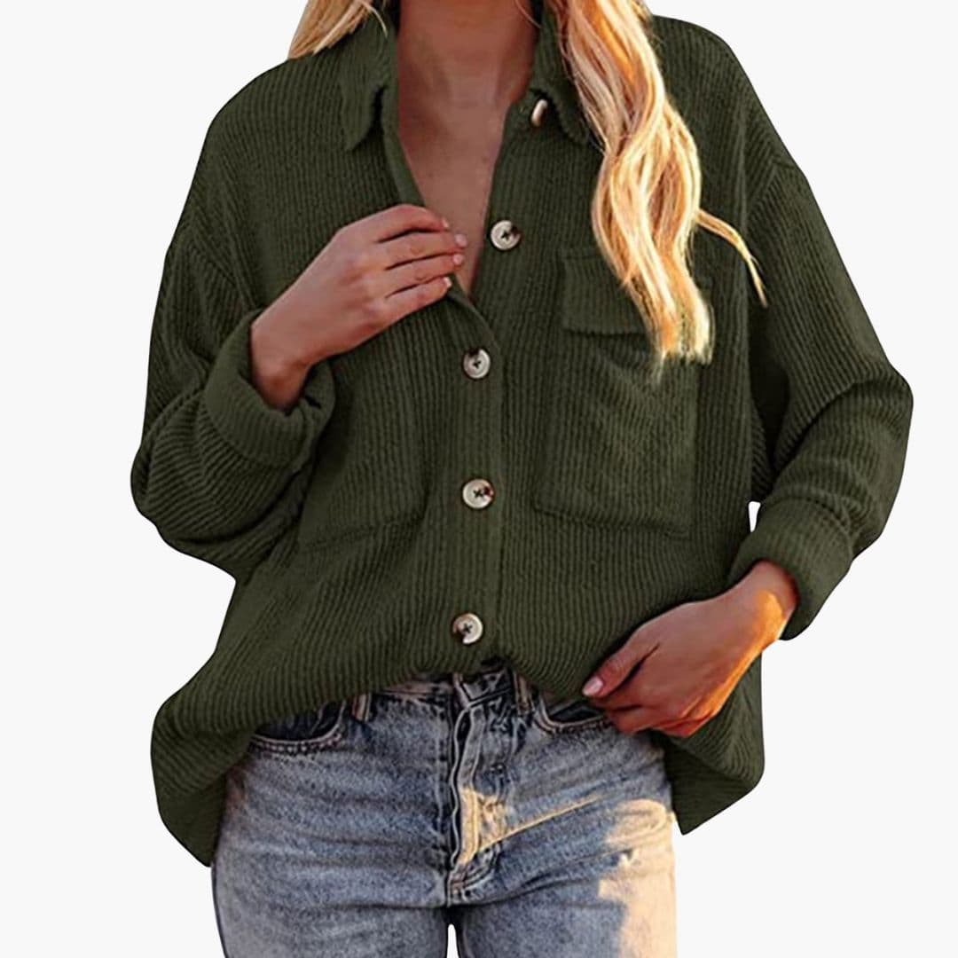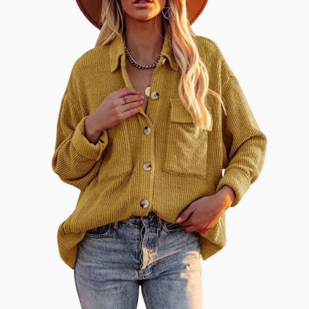 Ženska kordurova jakna s prednjim gumbima i preklopljenim ovratnikom