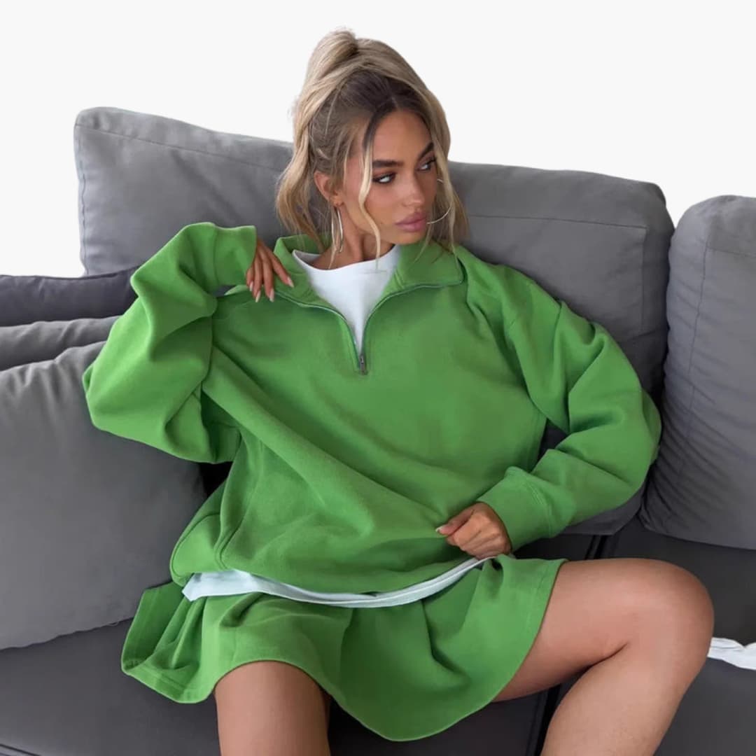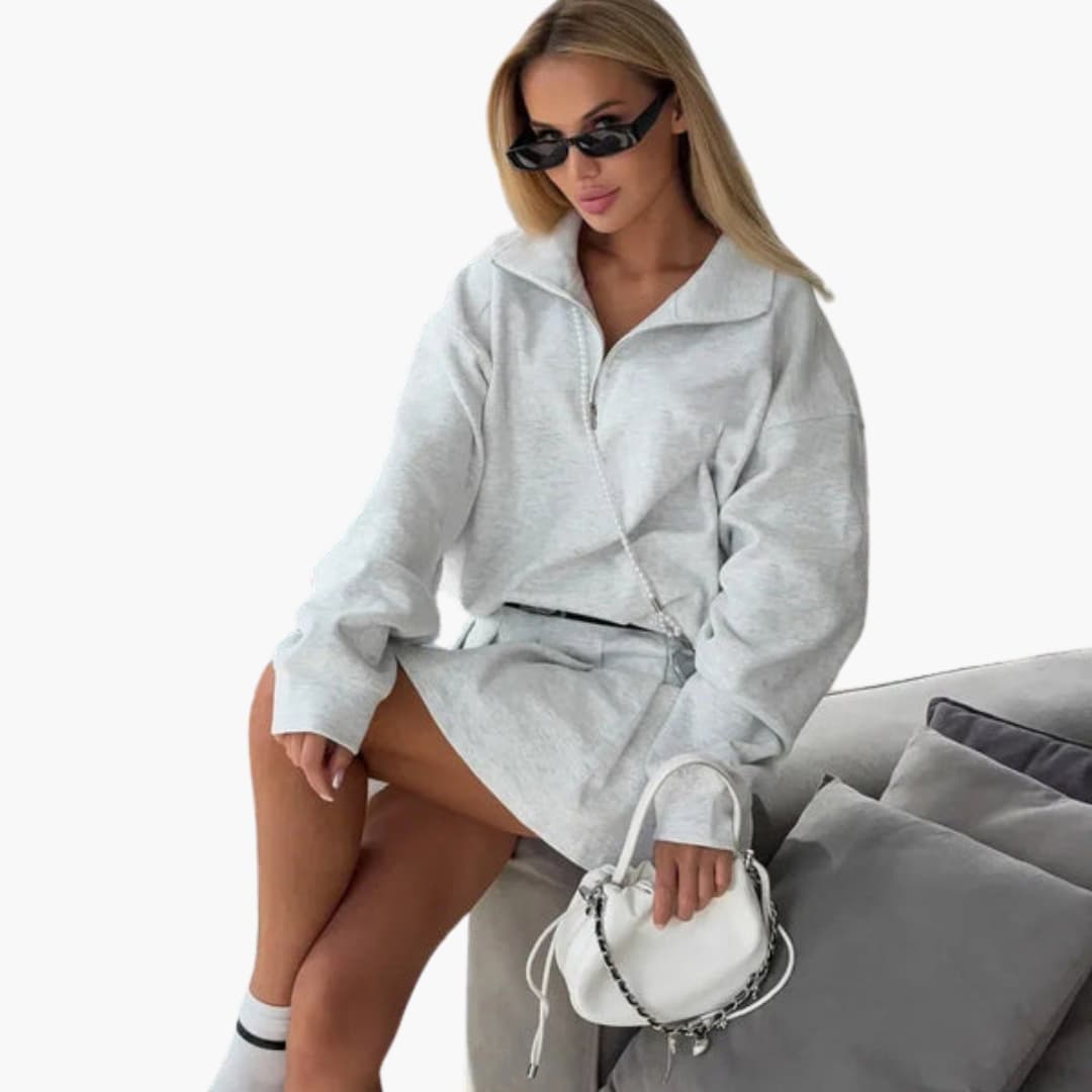 Komplet s džemperom s patentnim zatvaračem na ovratniku i slojevitim unutarnjim topom