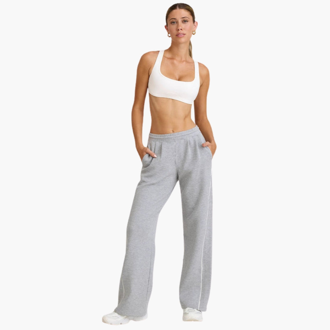 Ez a női laza szabású nadrág elasztikus derékkal, könnyen felhúzható megoldással és praktikus oldalzsebekkel rendelkezik. A széles szabás egyenes szárakkal és varrott szegéllyel modern sziluettet alkot. Az egyszínű felület és az egyszerű szabás megkönnyíti, hogy ezt a nadrágot különféle felsőkkel és cipőkkel párosítsa mindenféle tevékenységhez.