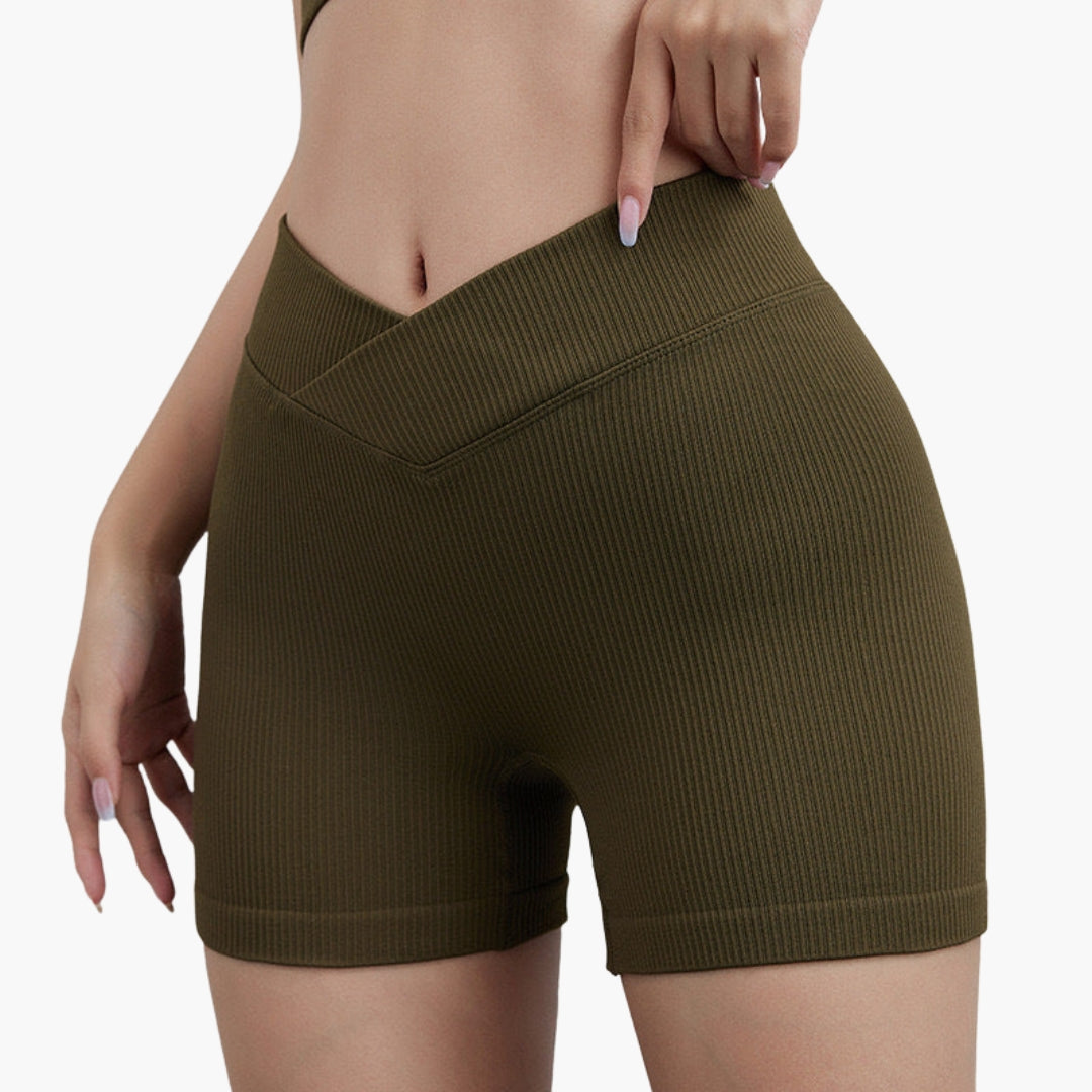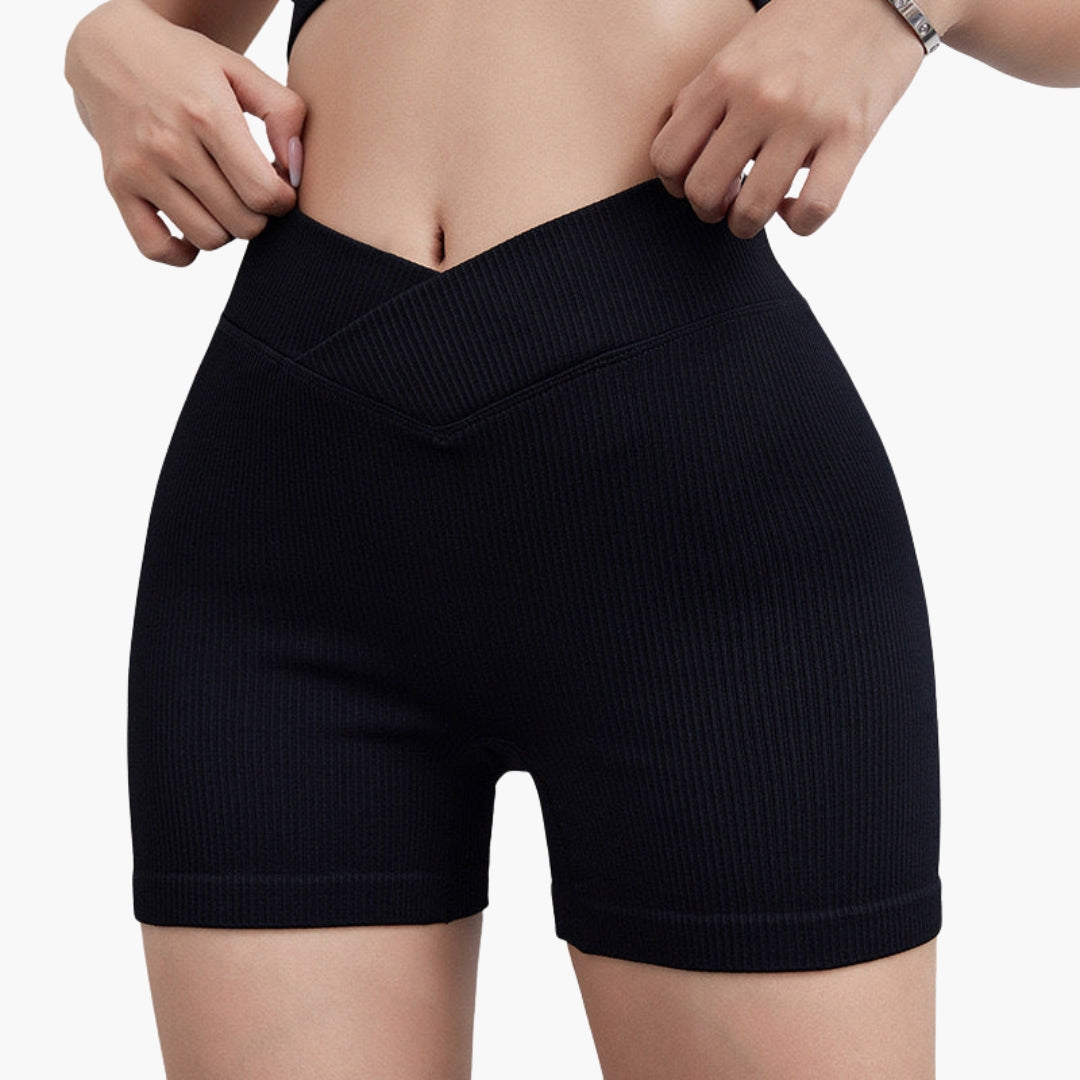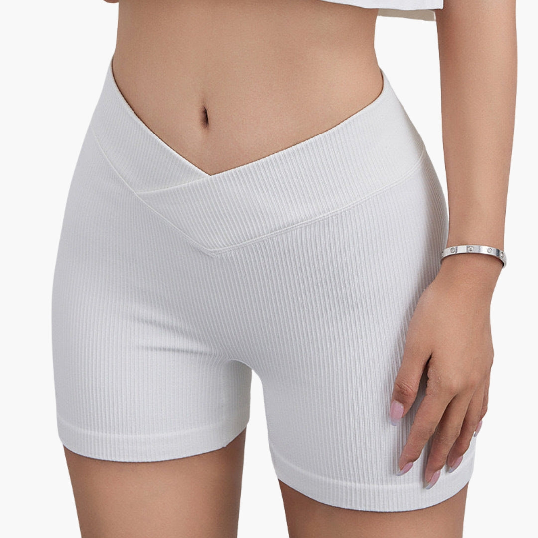 Női bordázott rövidnadrág V-derékkal és rugalmas kialakítással.