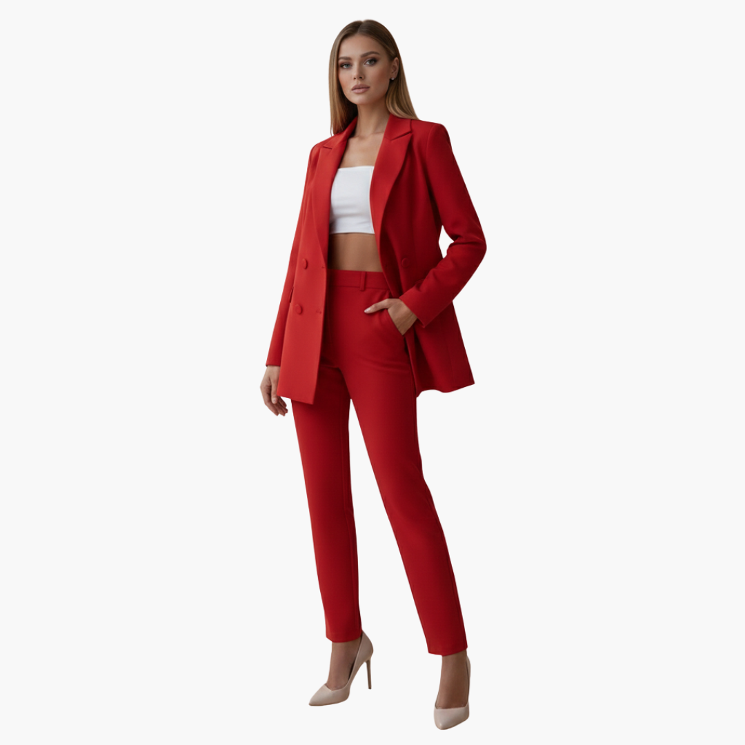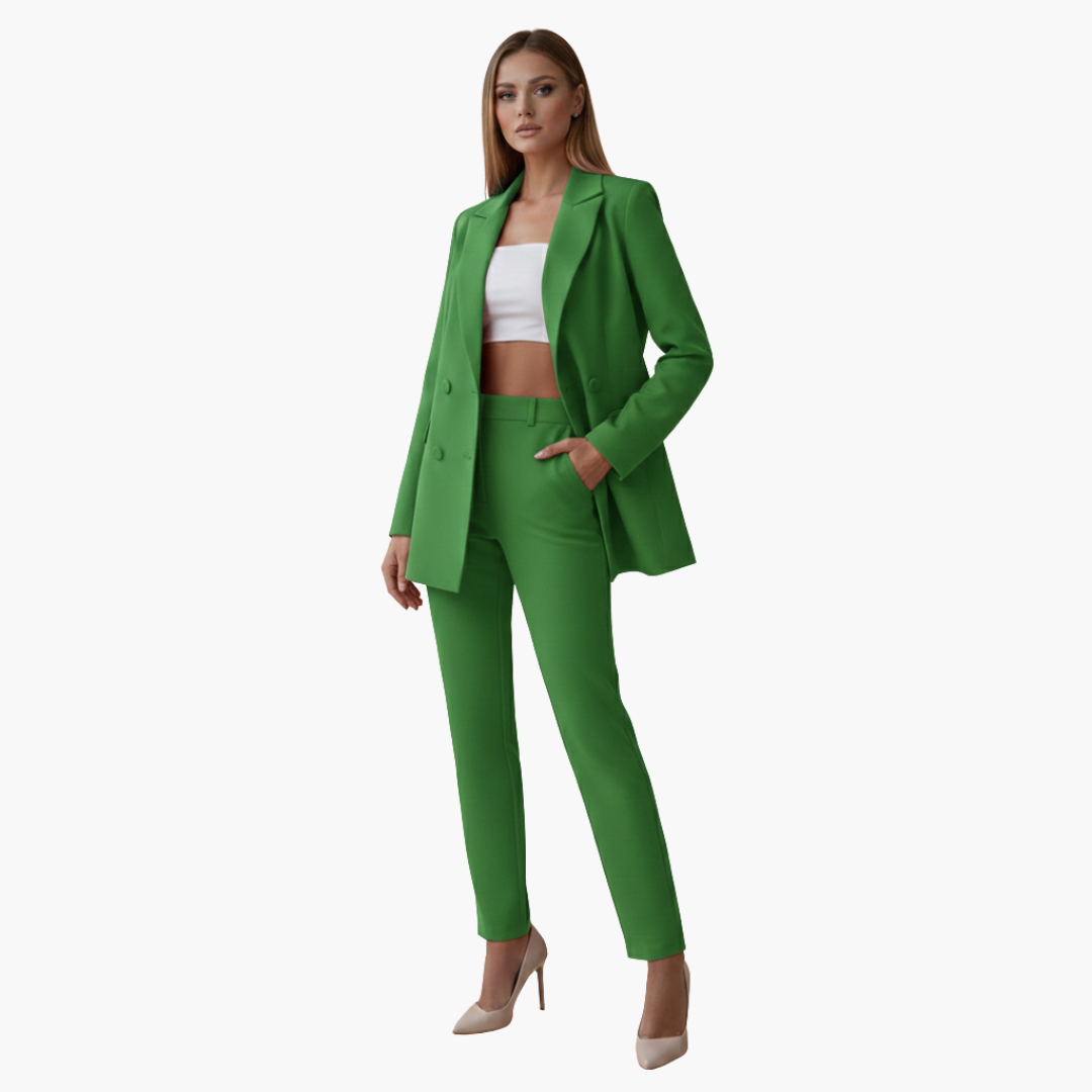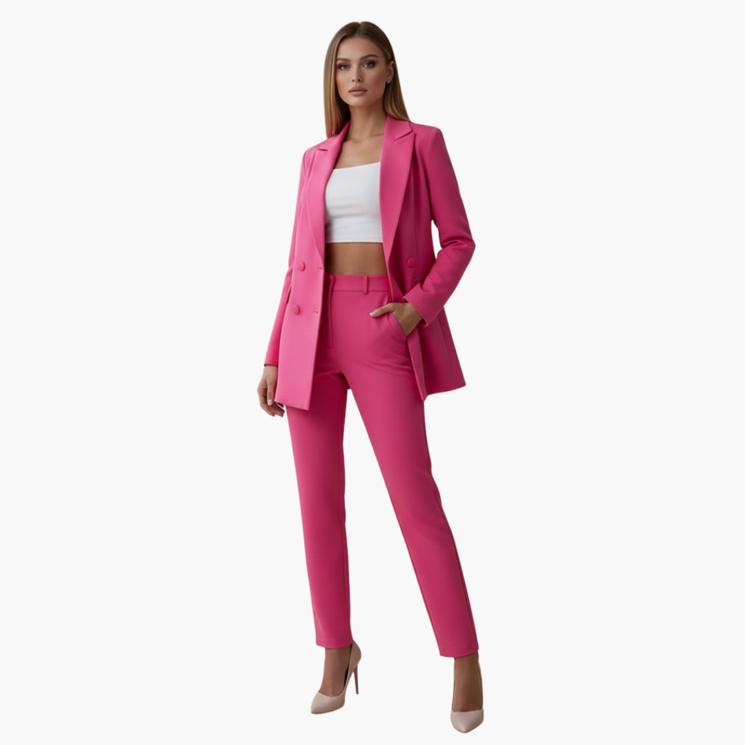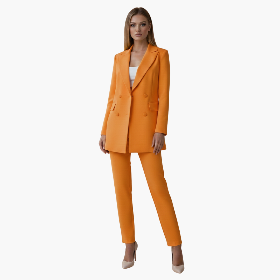 Damespak met dubbelgeknoopte blazer en nauwsluitende broek