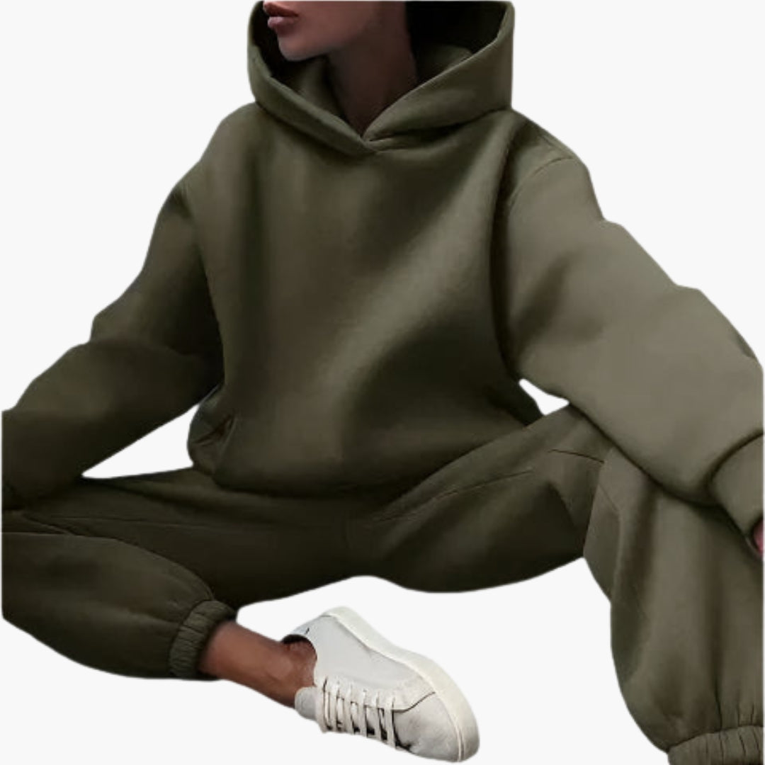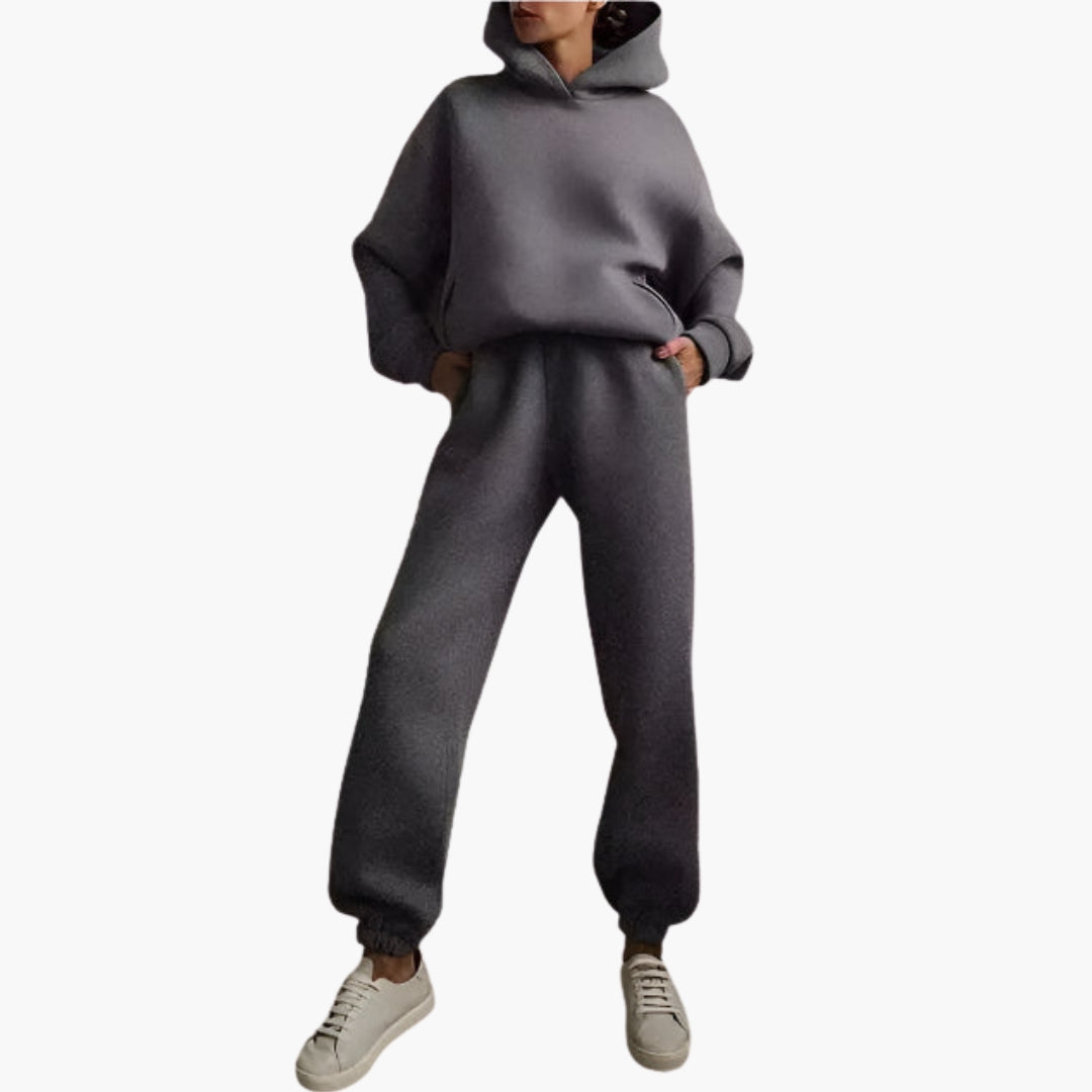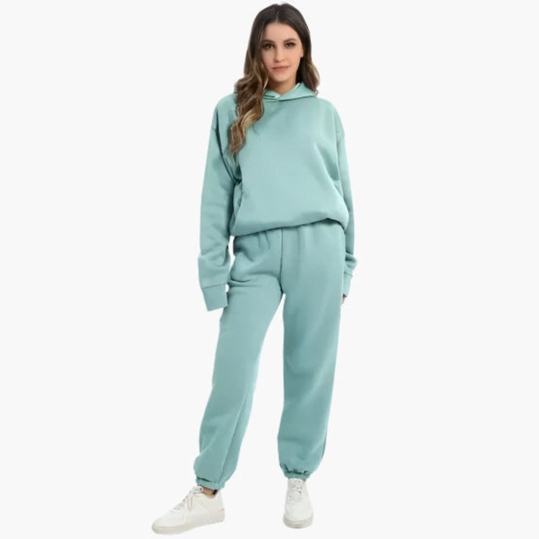 Dames relaxed fit set met een hoodie en bijpassende joggingbroek.