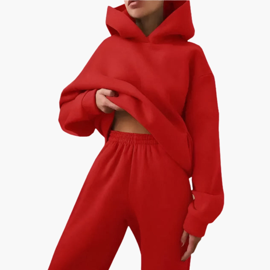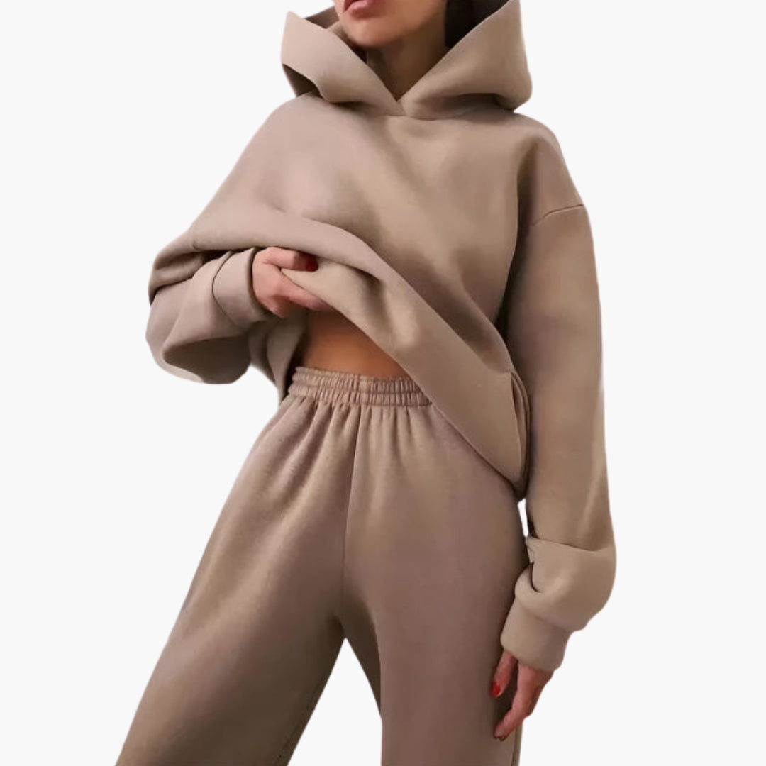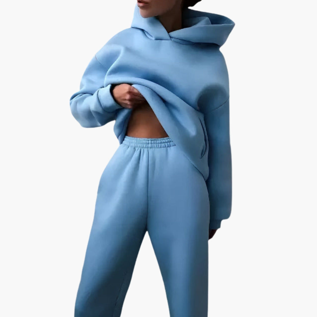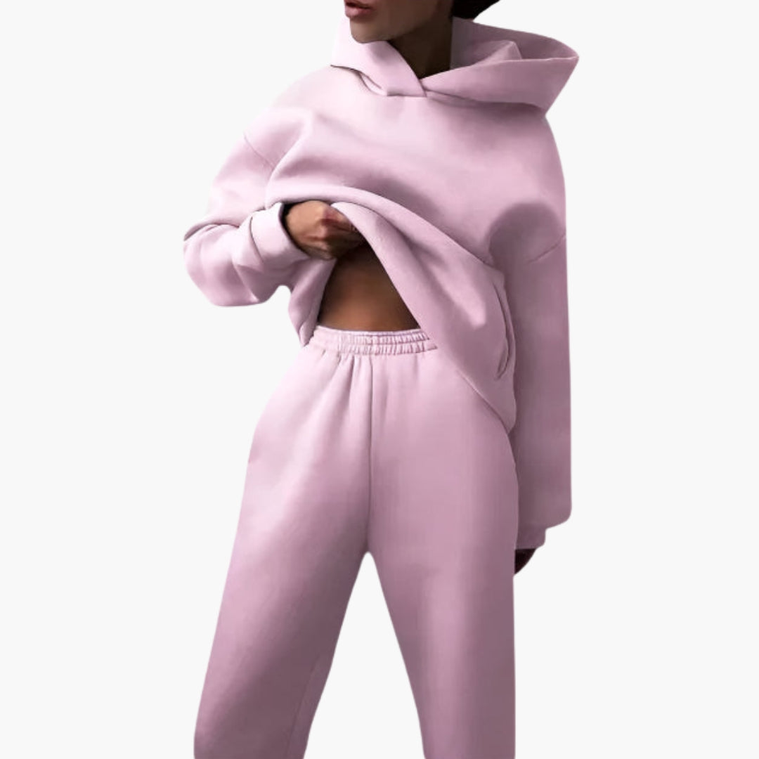 Dames relaxed fit set met een hoodie en bijpassende joggingbroek.