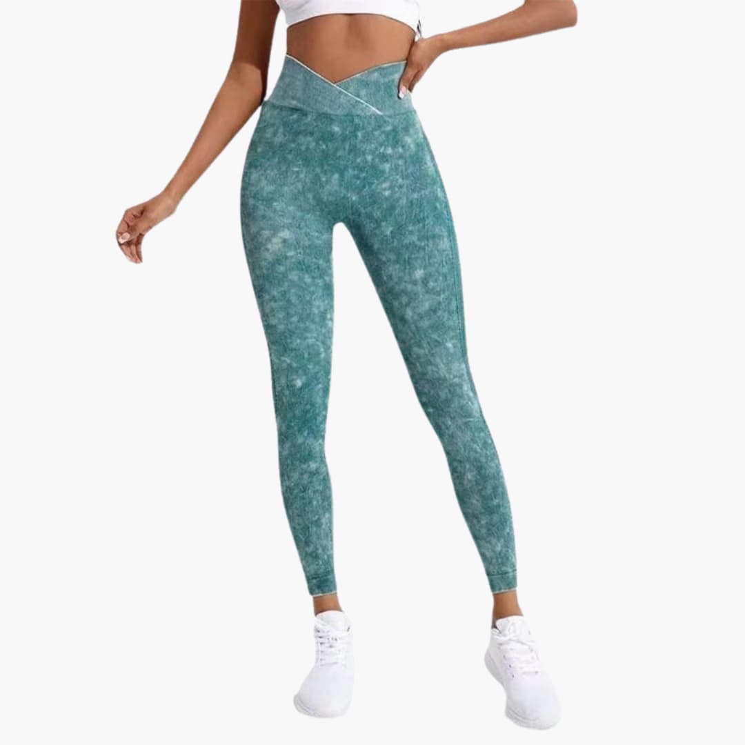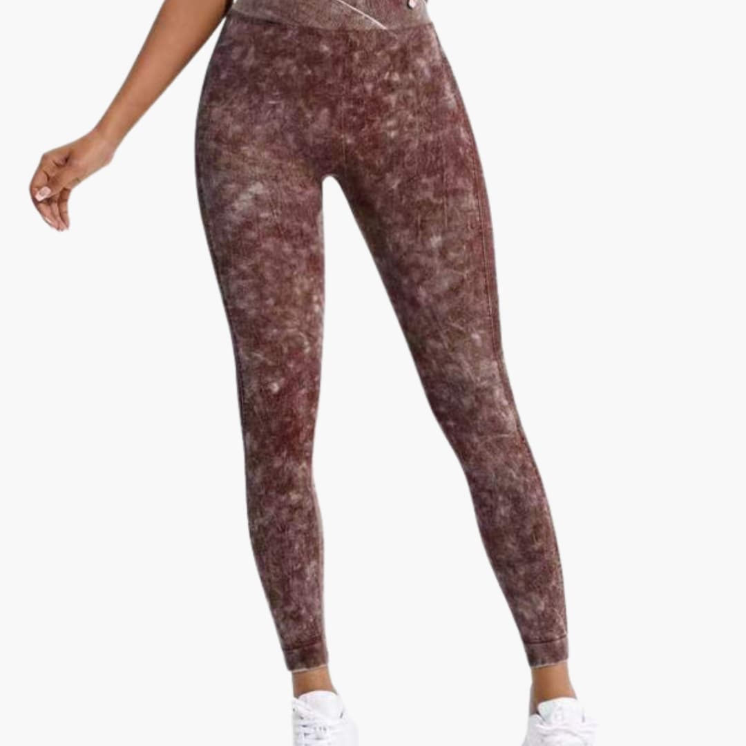 Høytlivs treningsleggings med elastisk midje og mønstret overflate