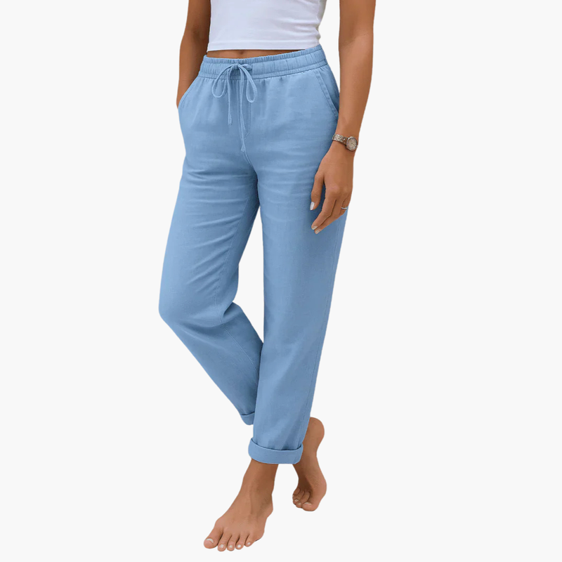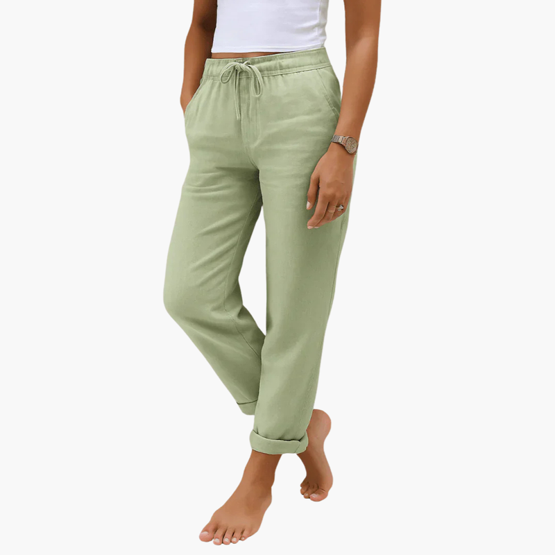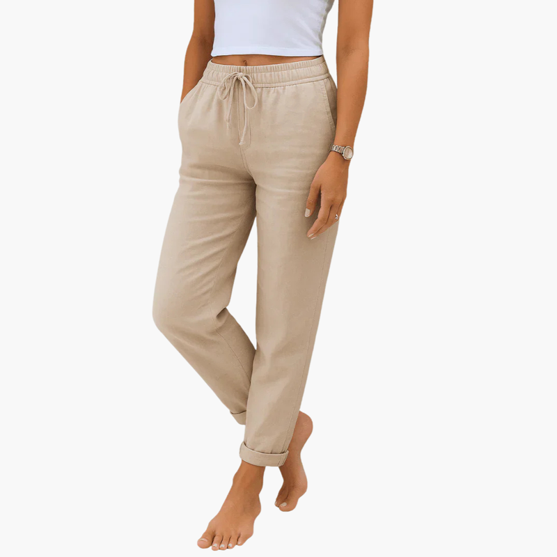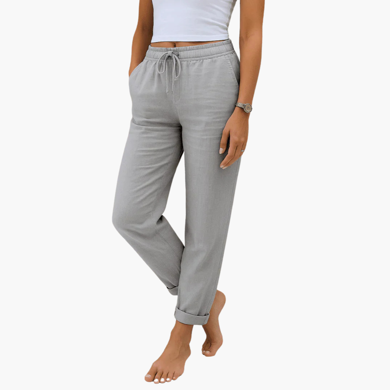 Spodnie damskie z sznurkiem w pasie i bocznymi kieszeniami