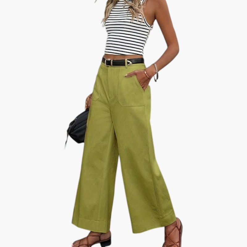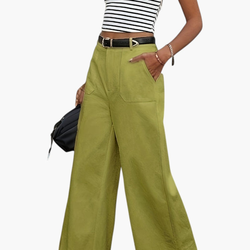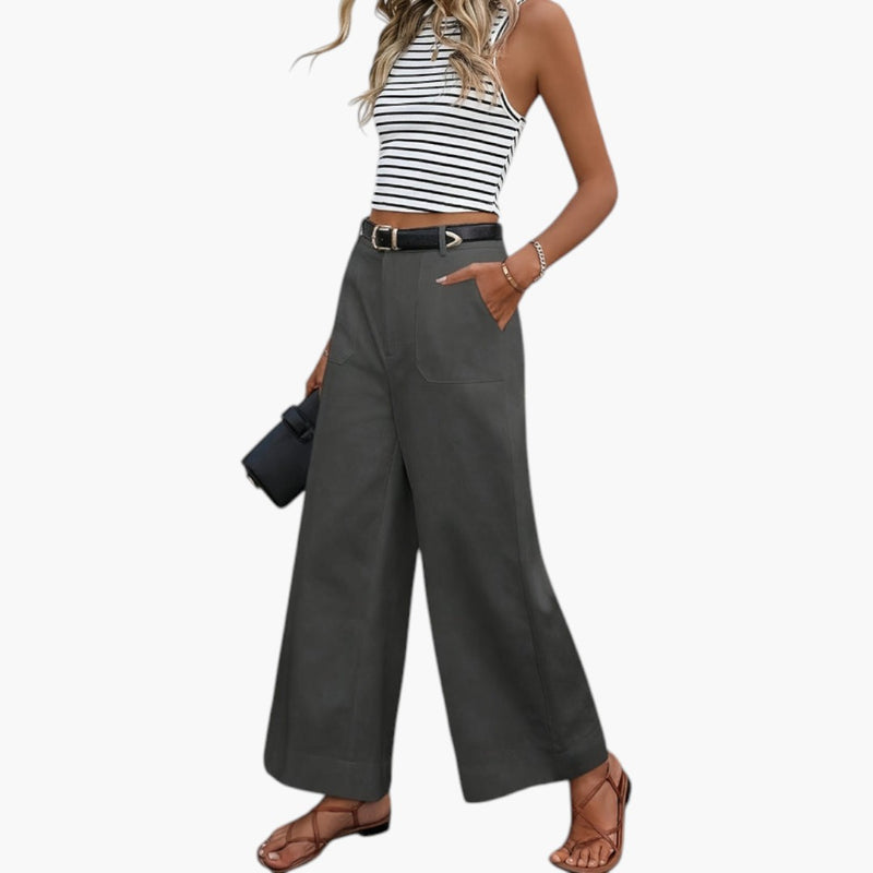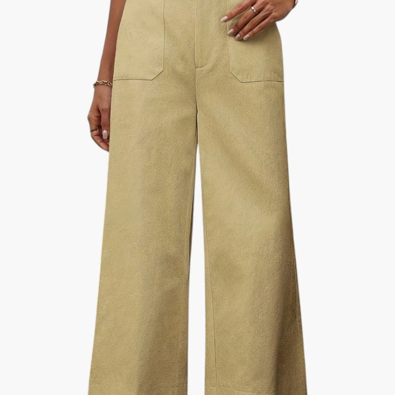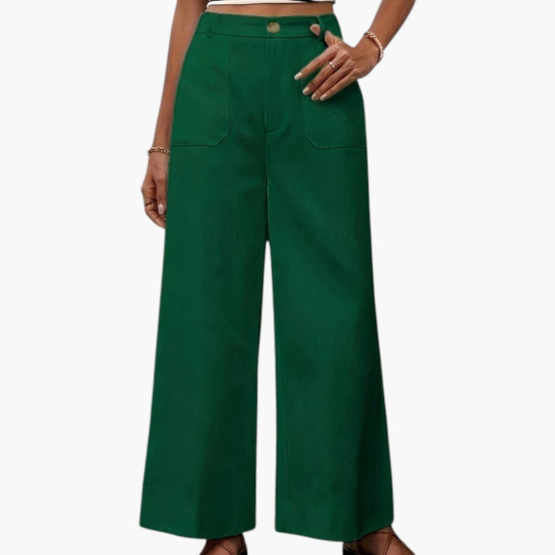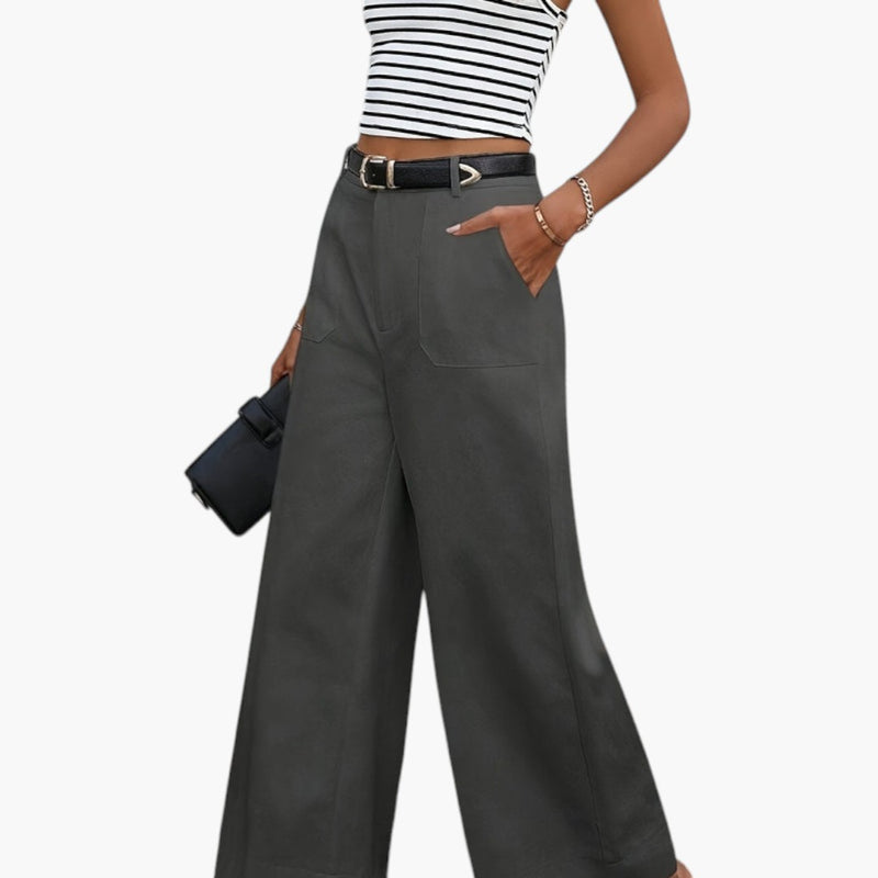Damskie spodnie o szerokich nogawkach z bocznymi kieszeniami i elastyczną talią