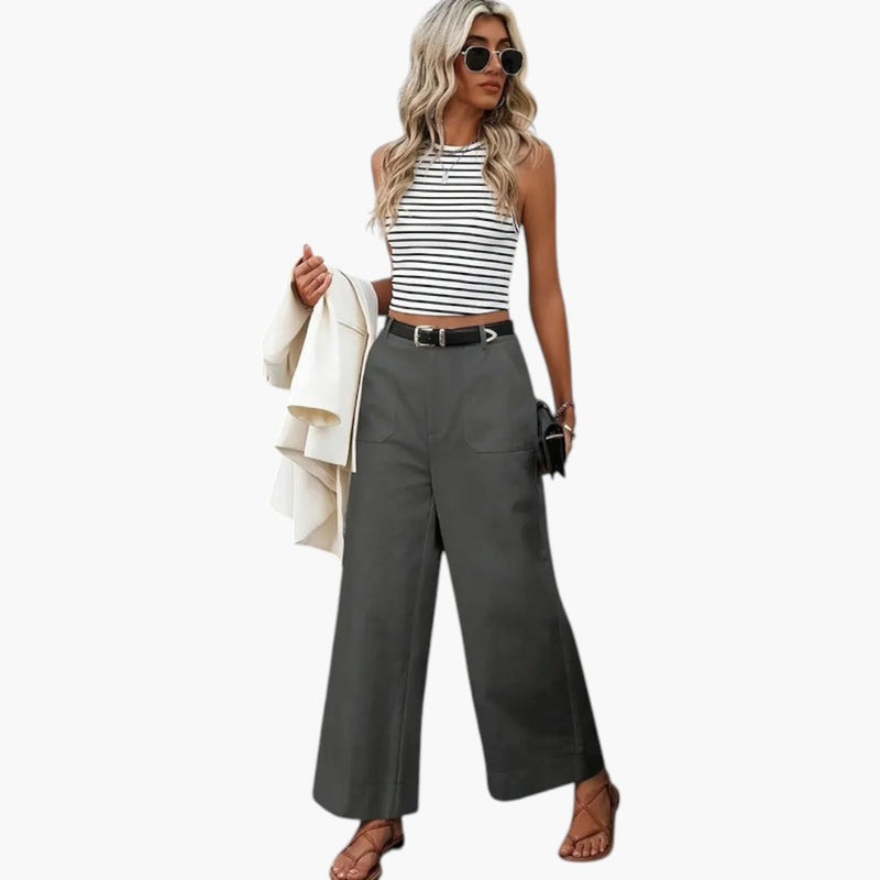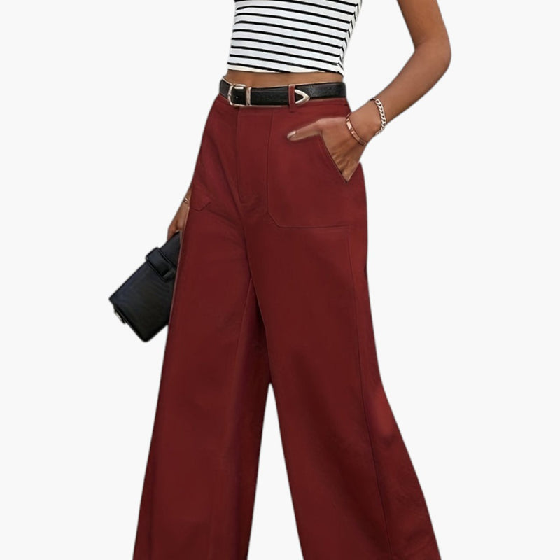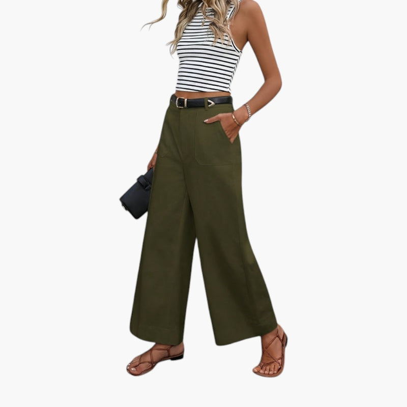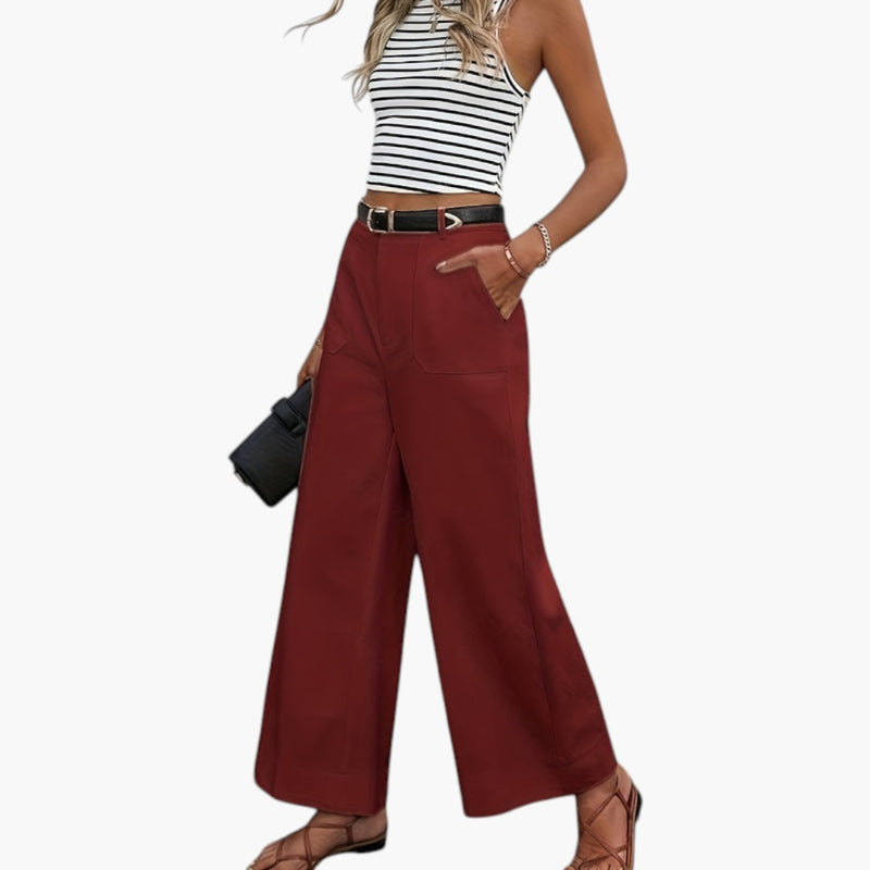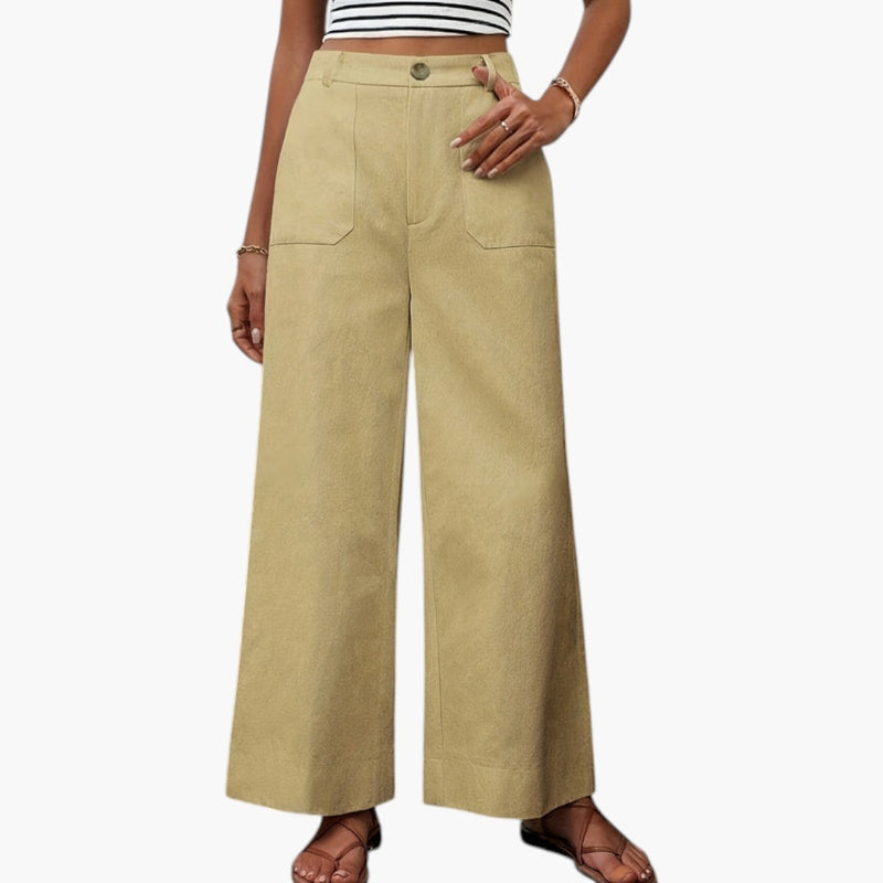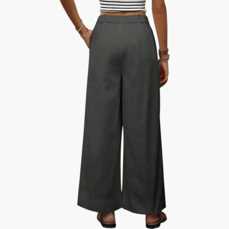 Damskie spodnie o szerokich nogawkach z bocznymi kieszeniami i elastyczną talią