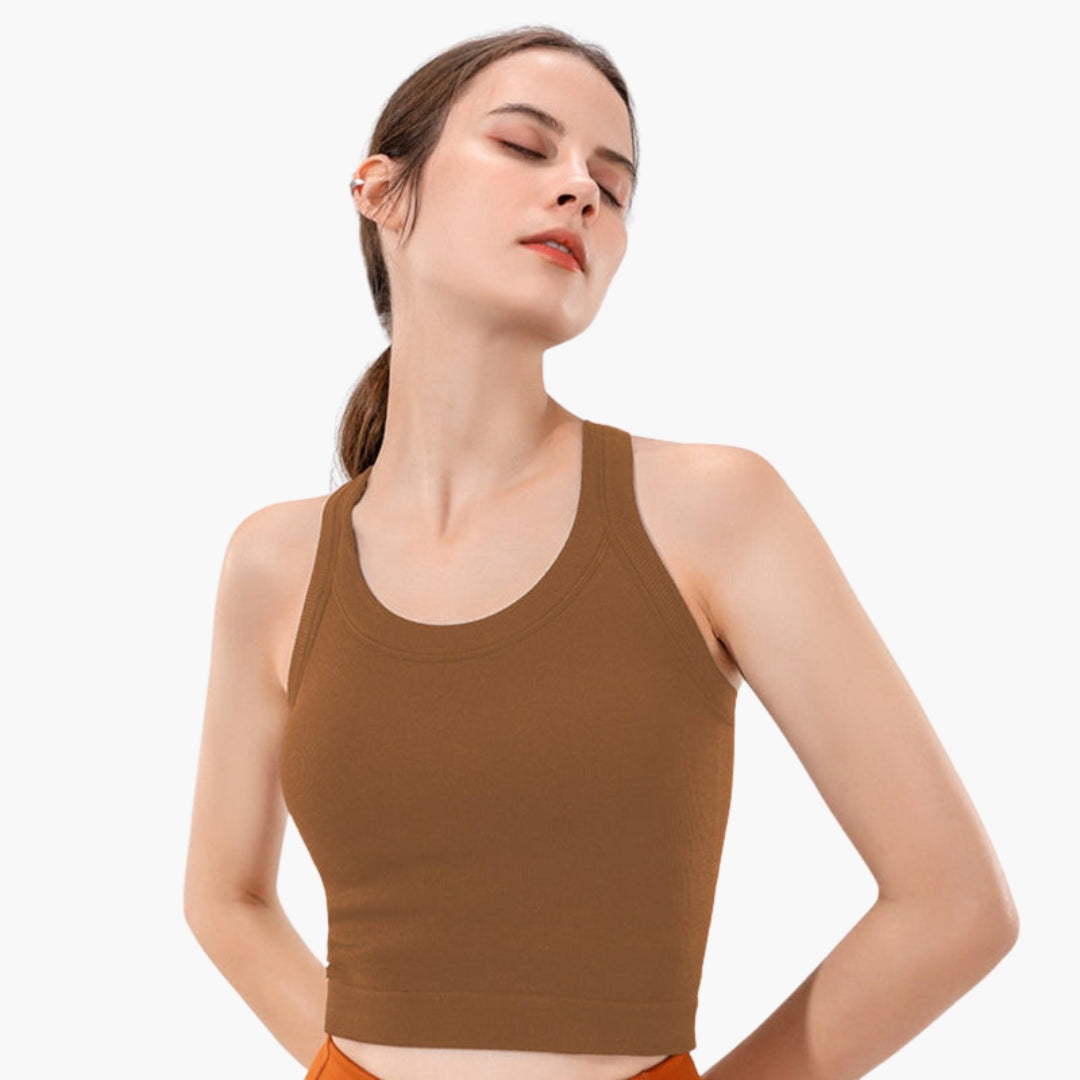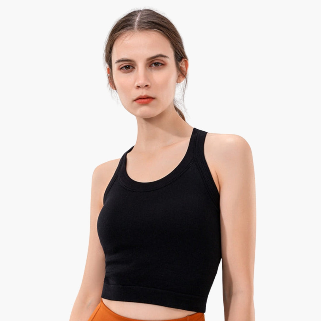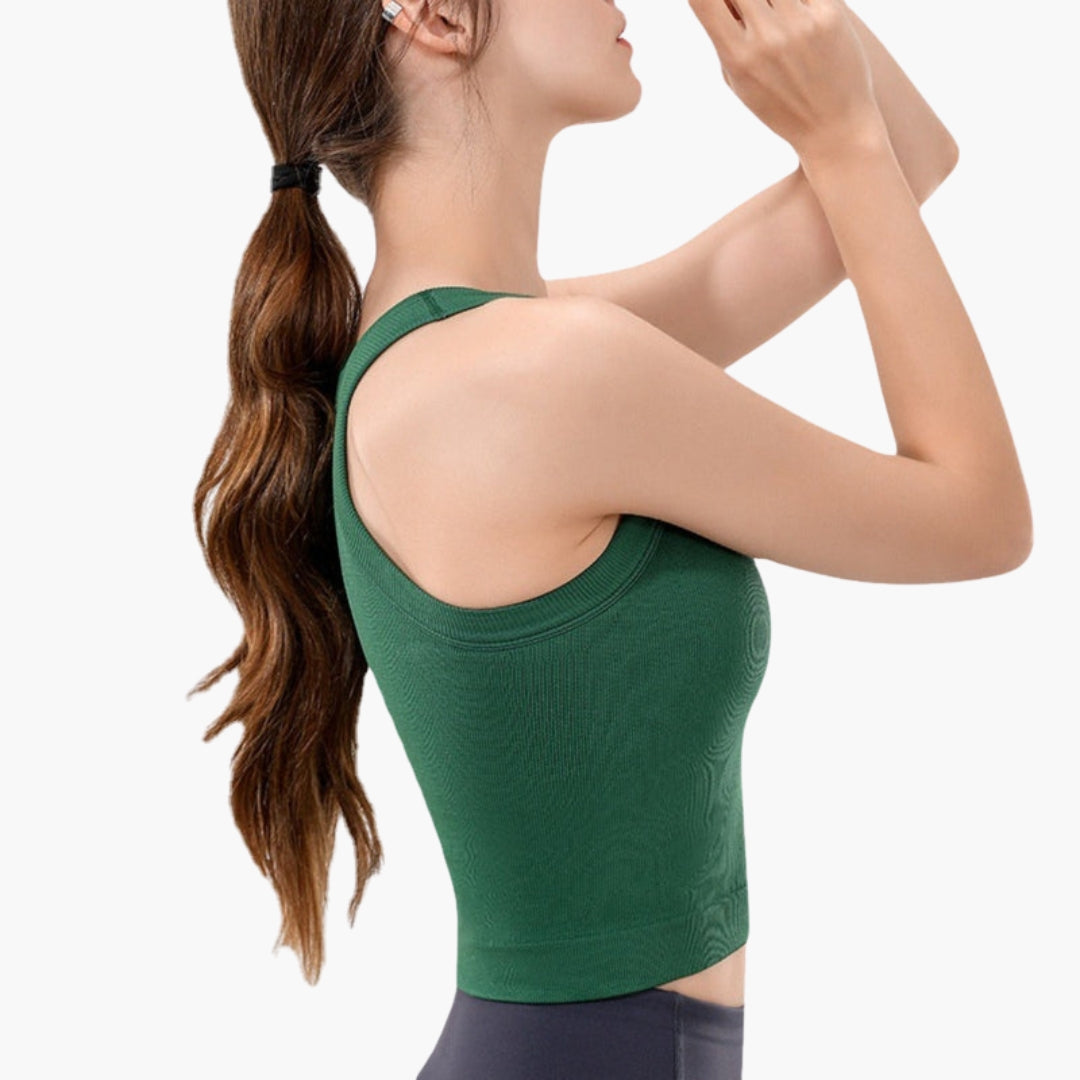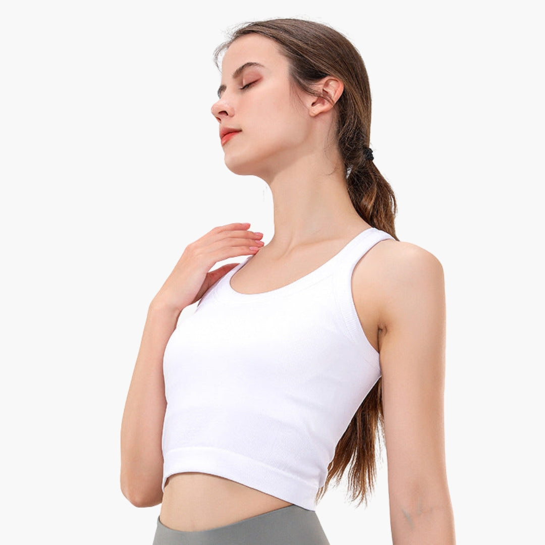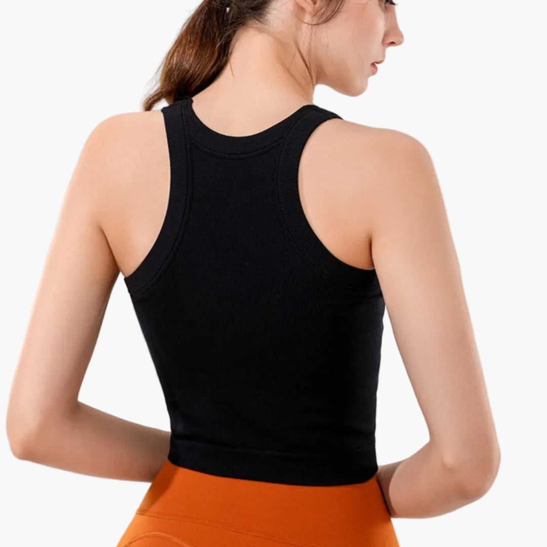 Damski dopasowany sportowy top na ramiączkach z prążkowaną powierzchnią i bez rękawów