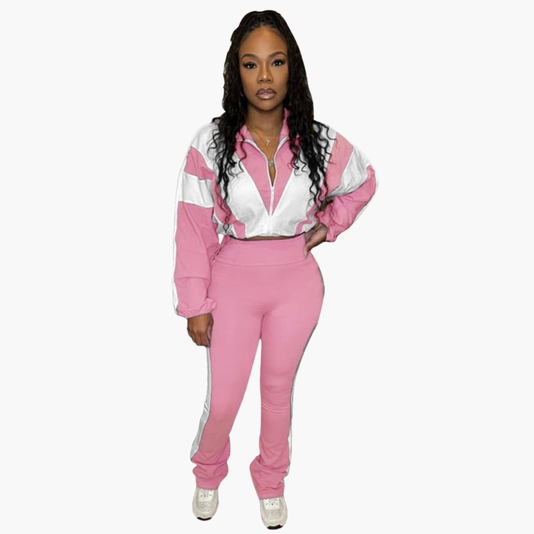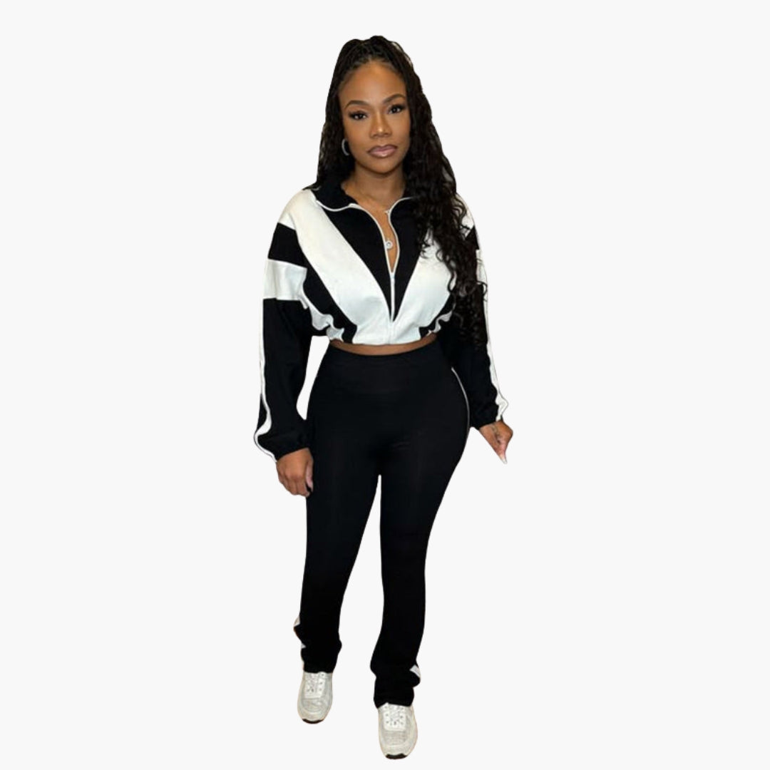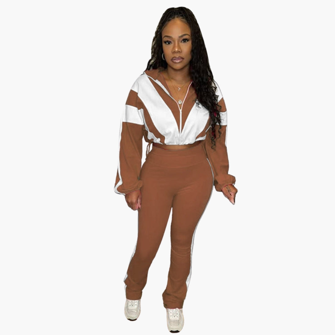 Dwuczęściowy zestaw damski z bluzą na zamek i dopasowanymi spodniami