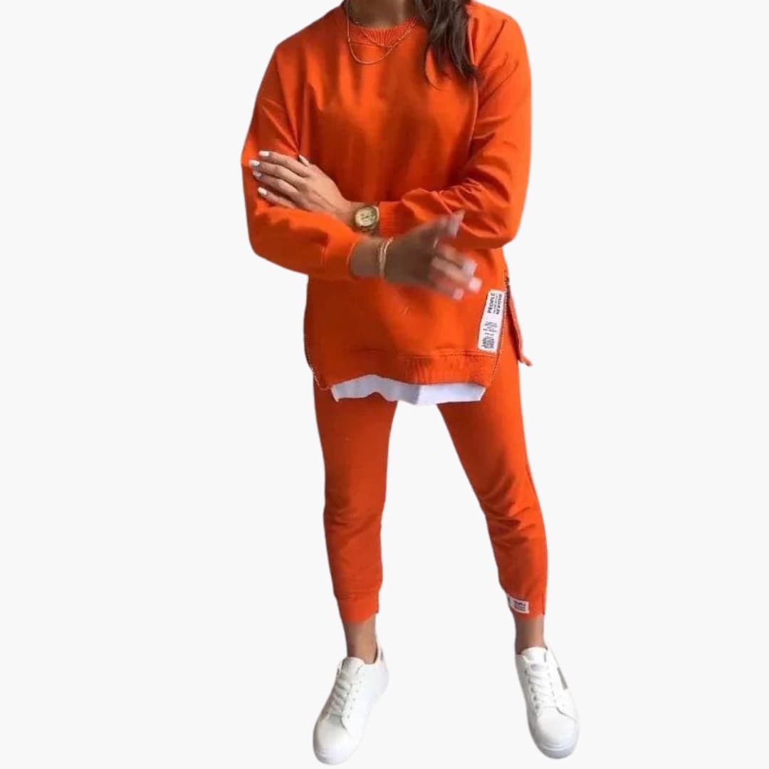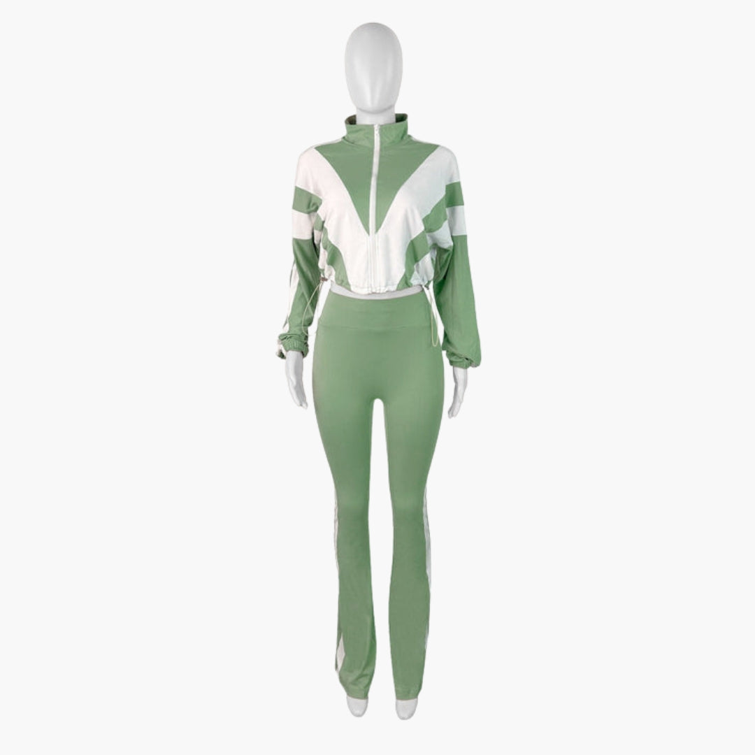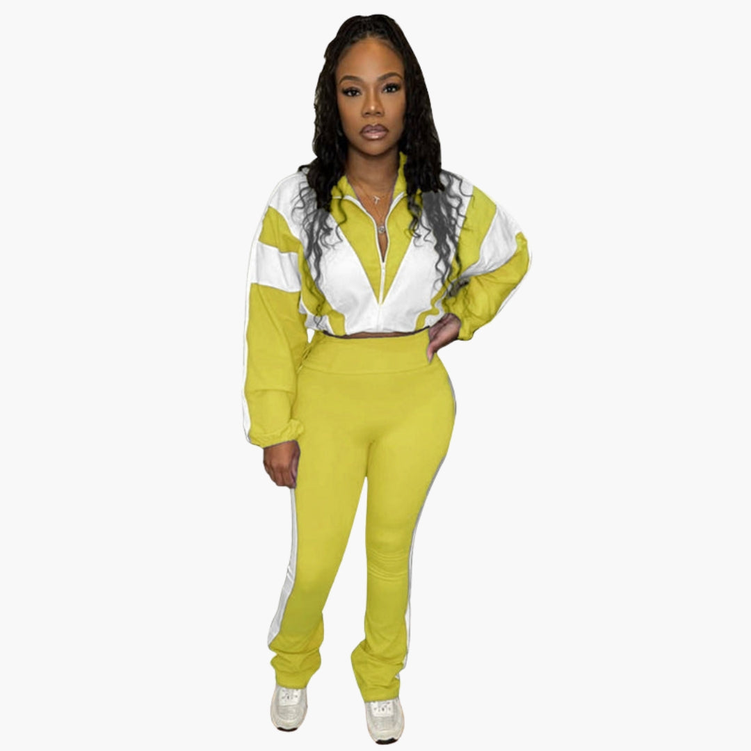 Dwuczęściowy zestaw damski z bluzą na zamek i dopasowanymi spodniami