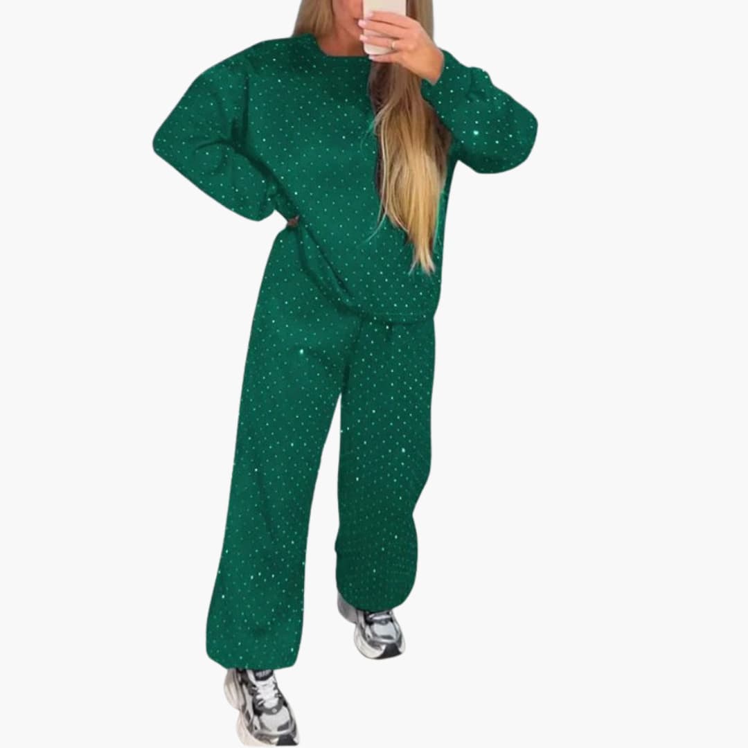 Trzyczęściowy zestaw damski z bluzką i luźnymi spodniami