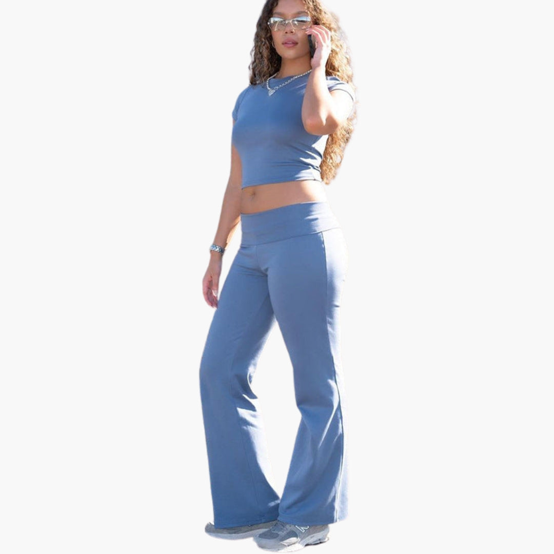 Dwuczęściowy zestaw damski z krótkim topem z krótkim rękawem