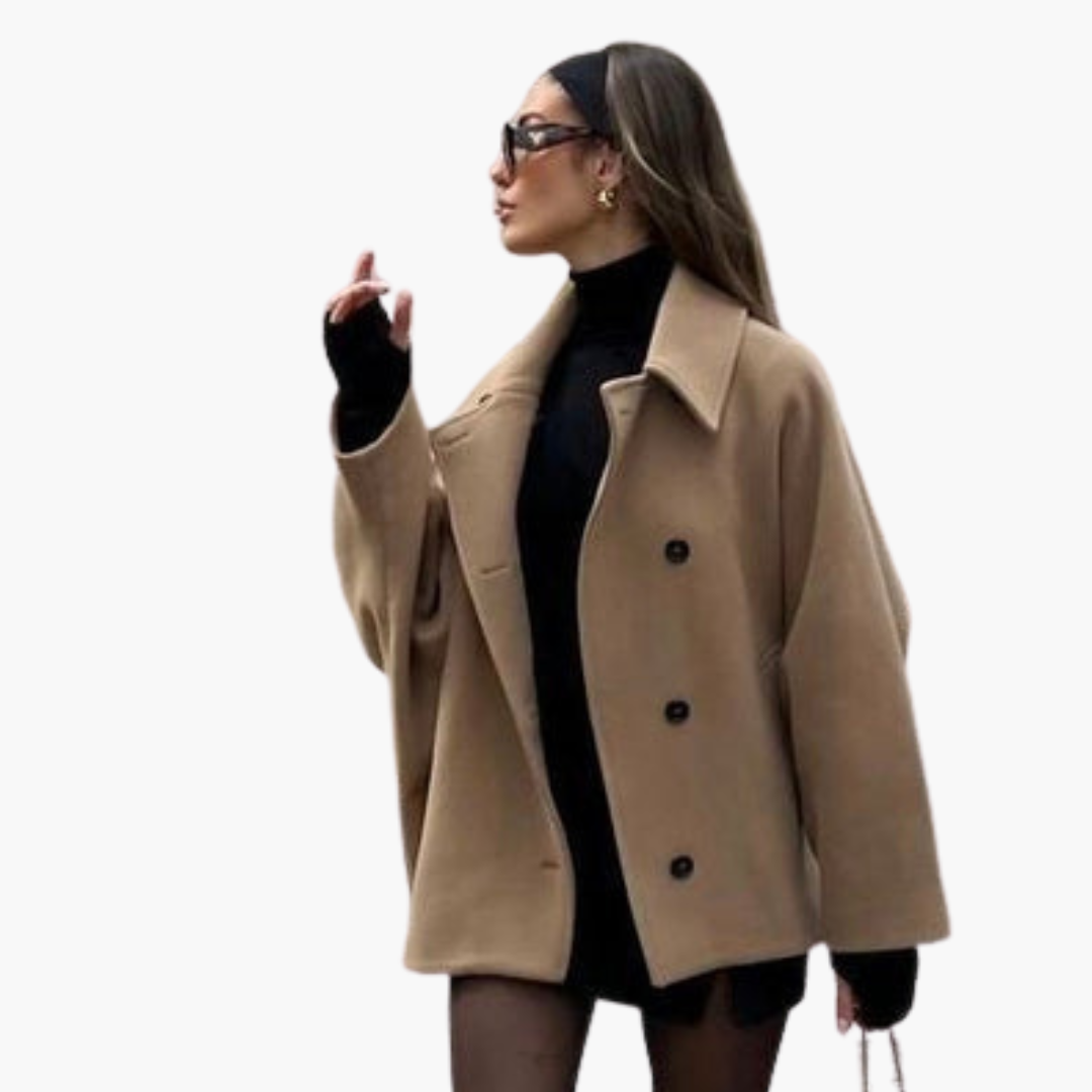 Damski płaszcz na guziki z szerokim kołnierzem