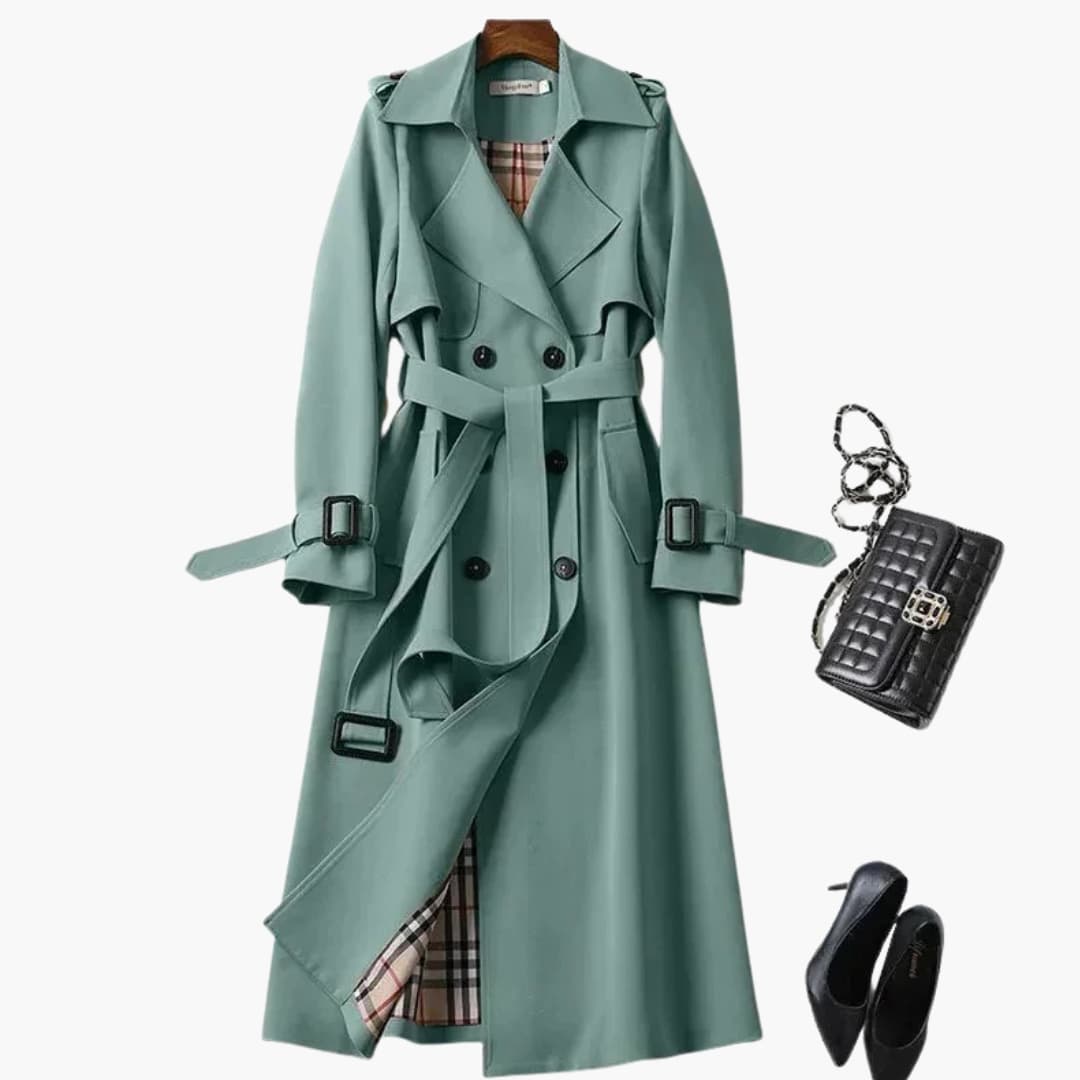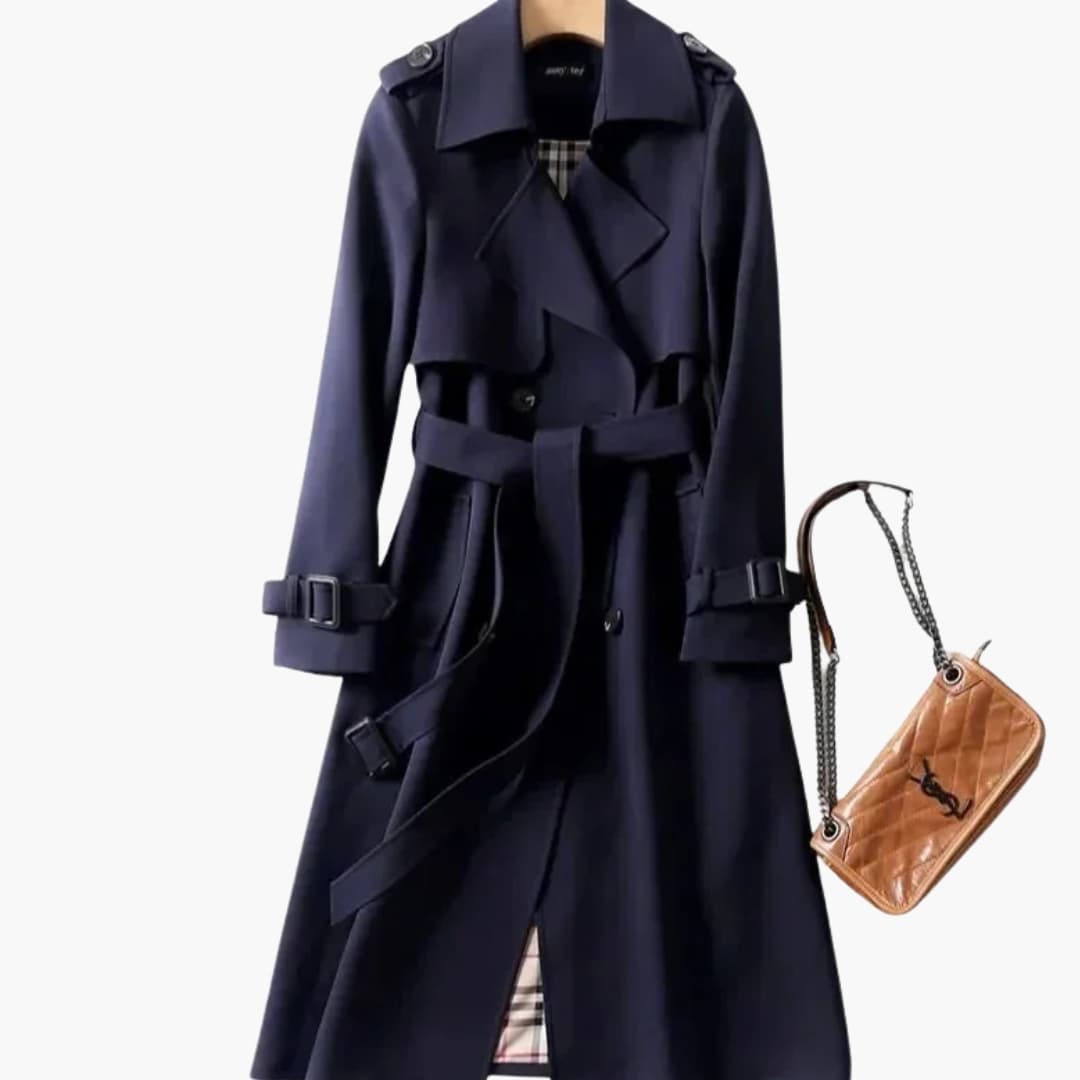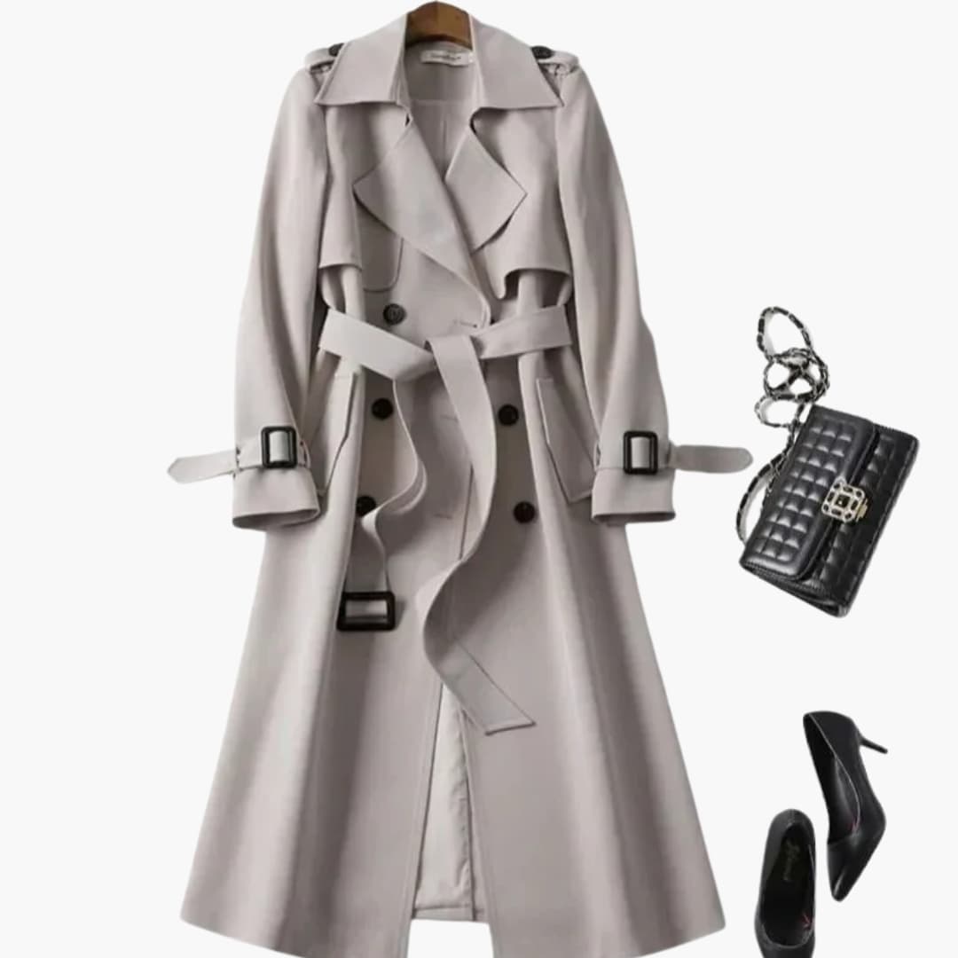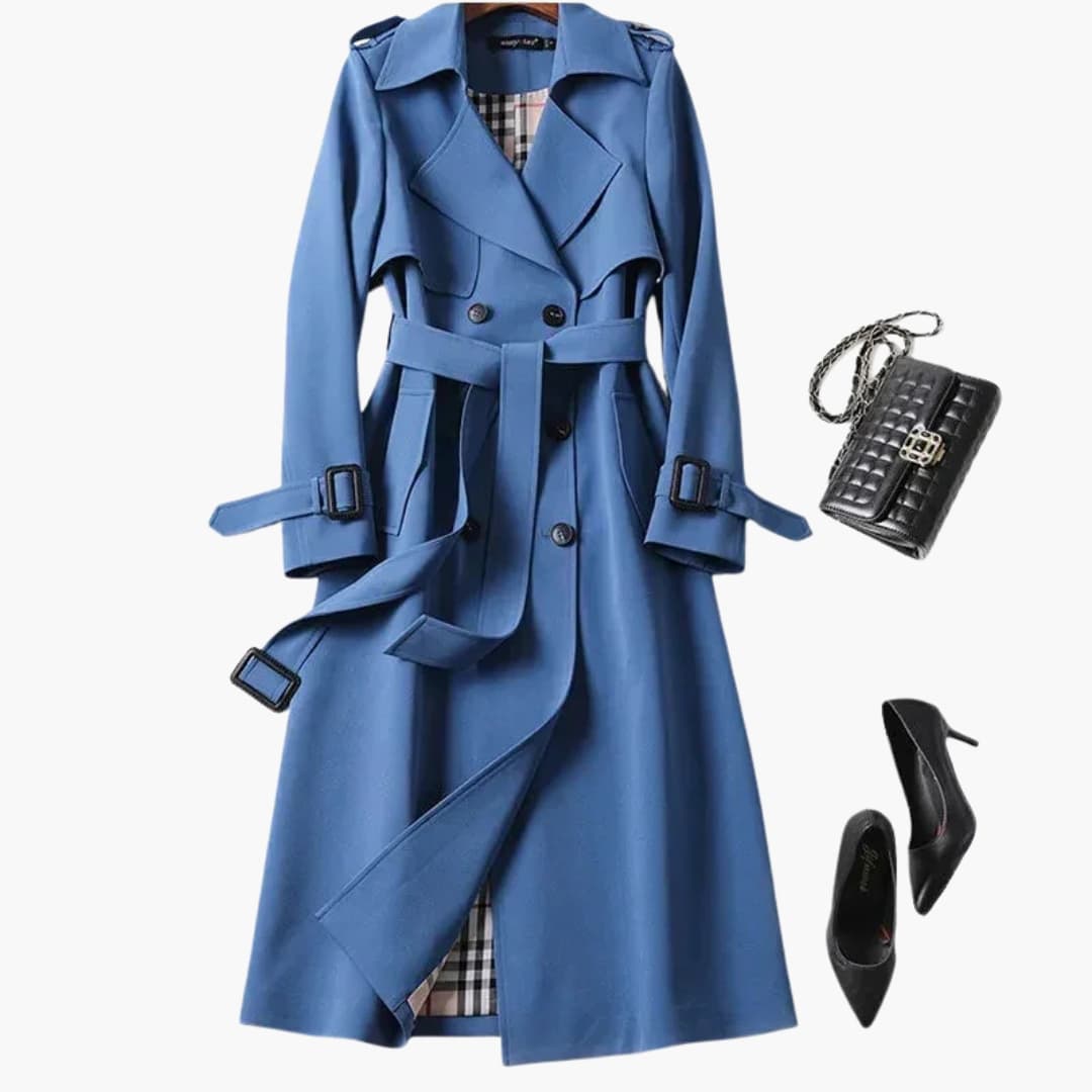 Damski dwurzędowy płaszcz trencz z klapami z wycięciem