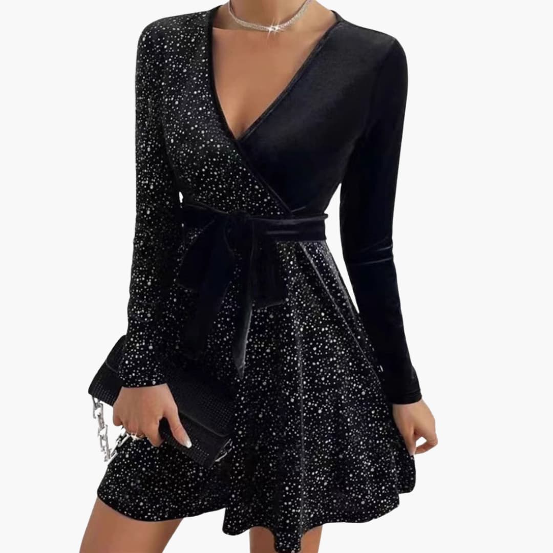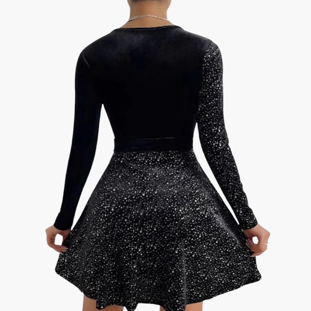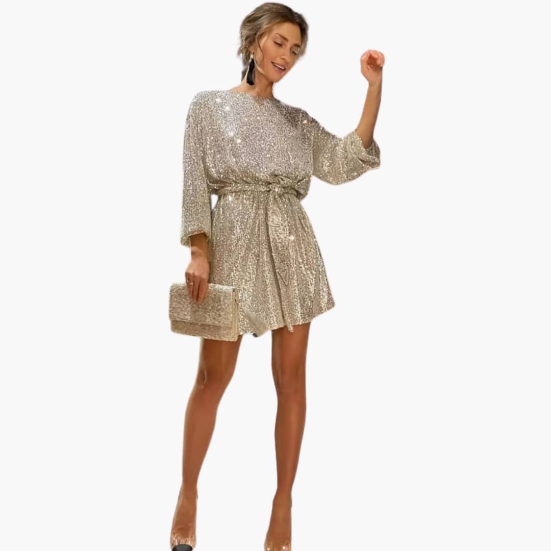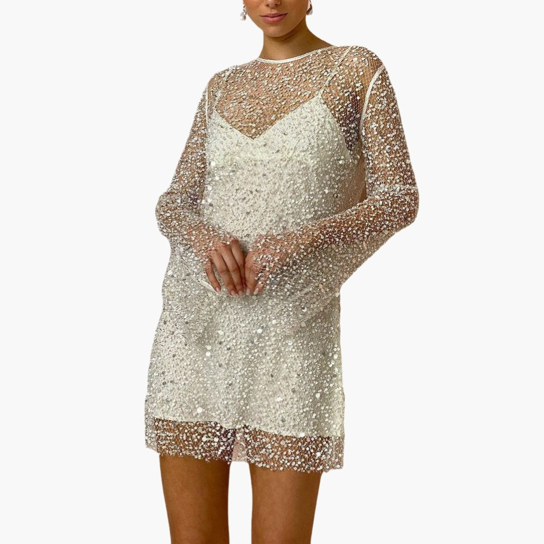 Sukienka damska z cienkimi ramiączkami i cekinową powierzchnią
