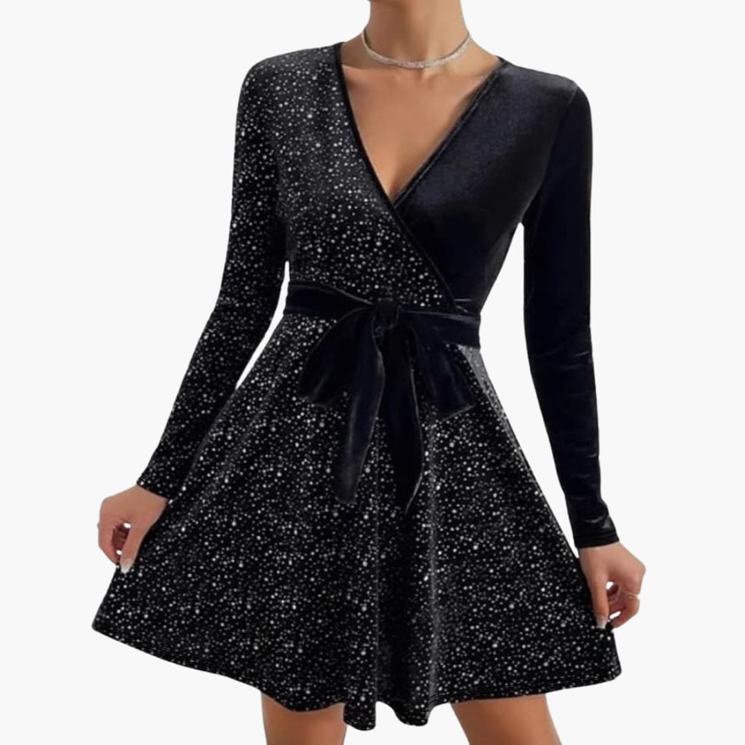 Sukienka koktajlowa damska z dekoltem w serek i detalem krzyżowym