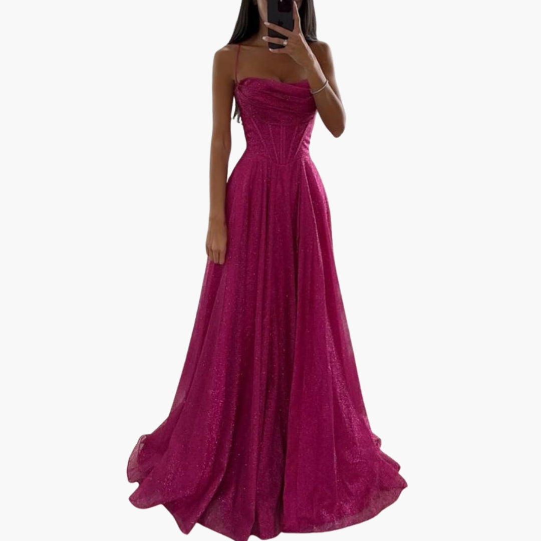 Sukienka damska z cienkimi ramiączkami i błyszczącą powierzchnią