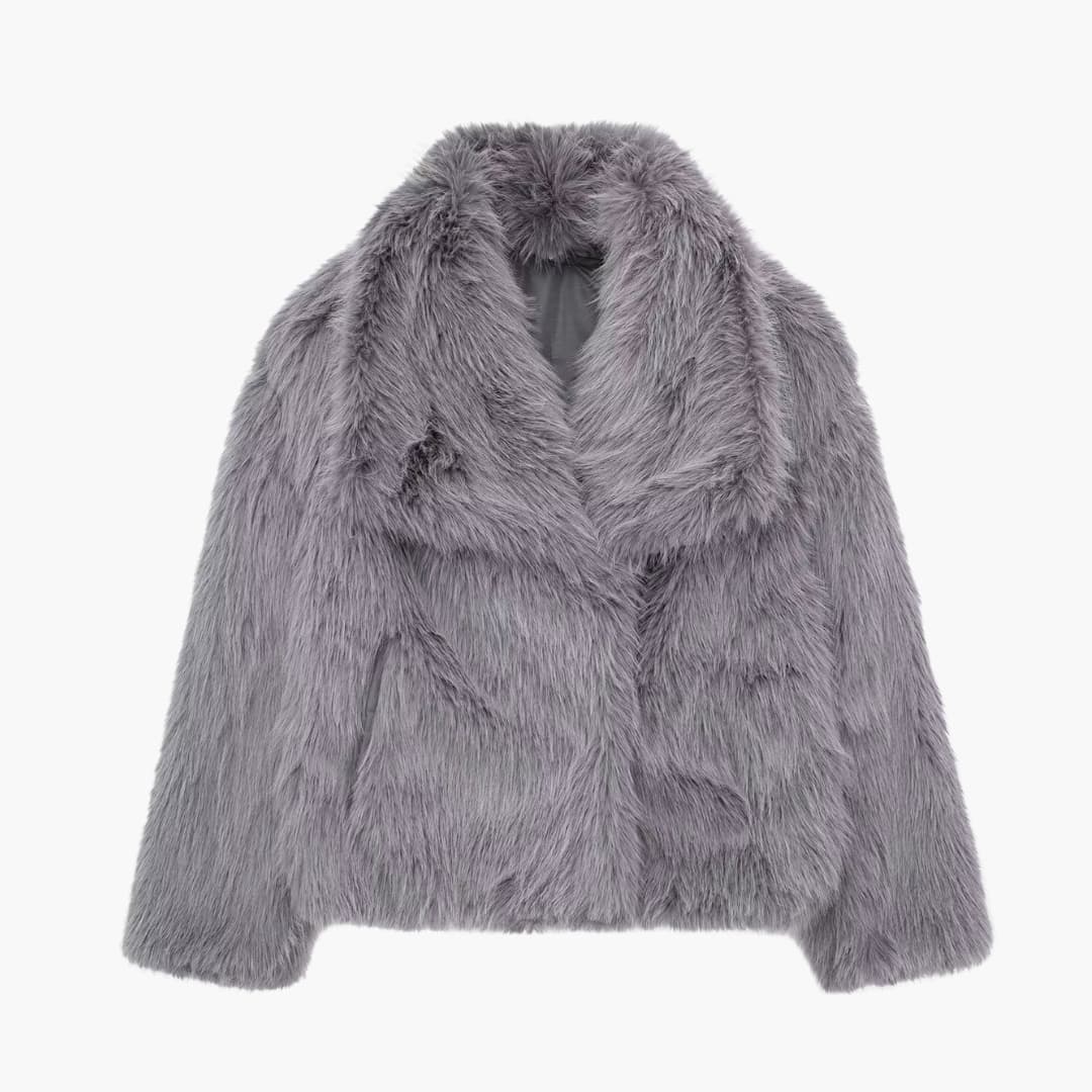 Damski płaszcz z futerkiem ekologiczny z szerokim kołnierzem
