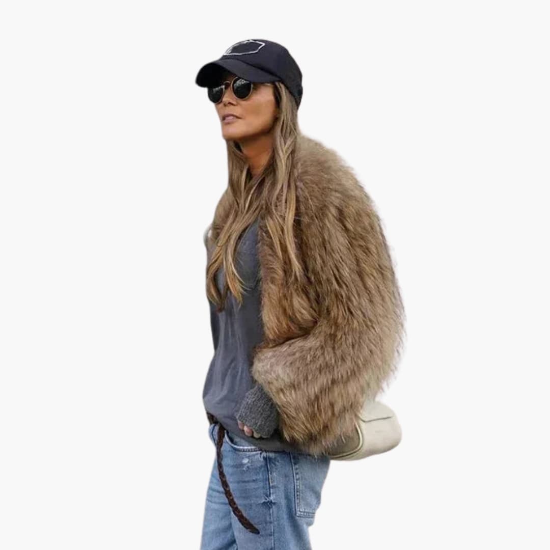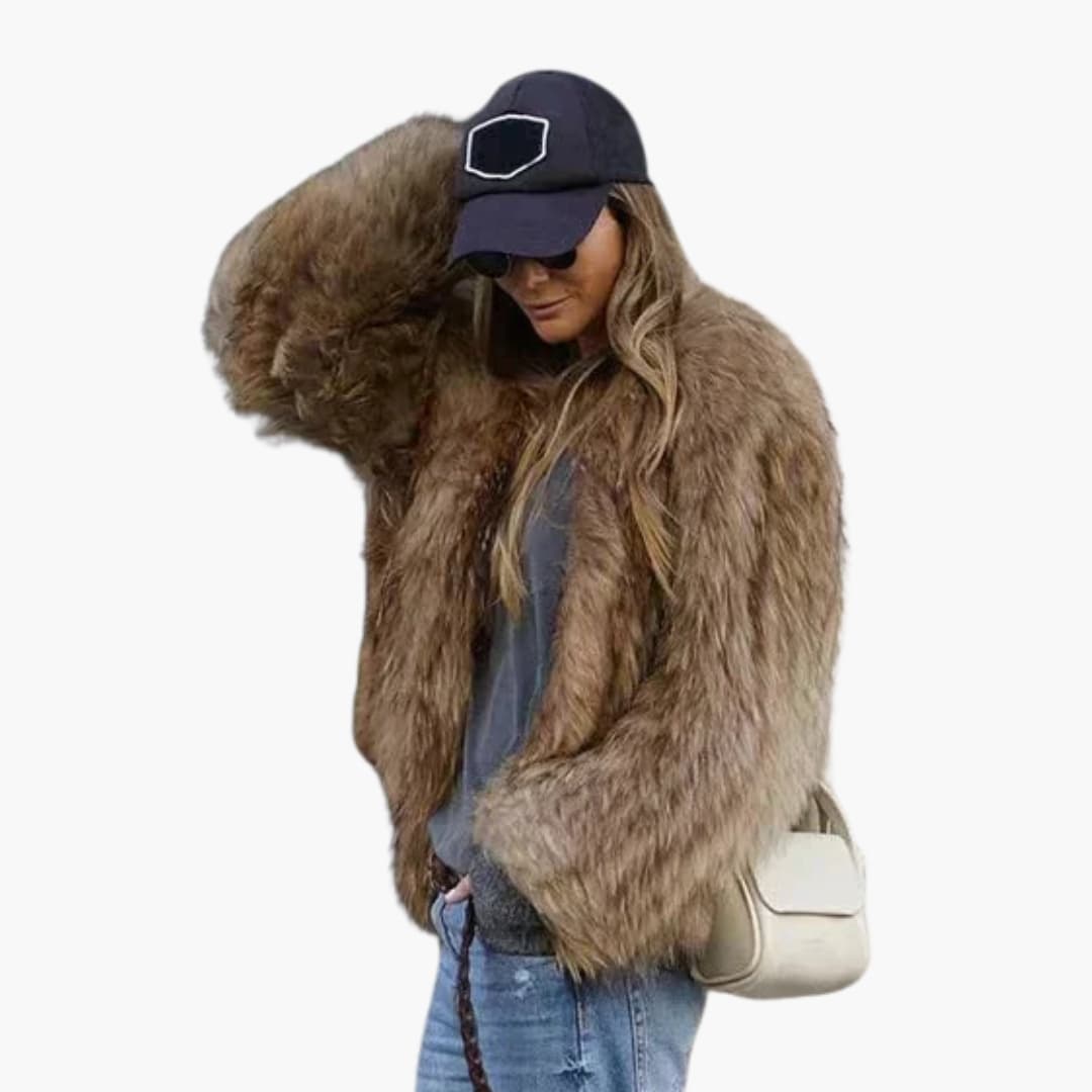 Damska kurtka z długim rękawem z futerka ekologicznego