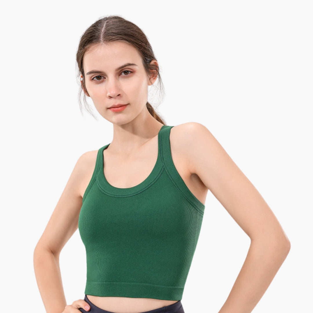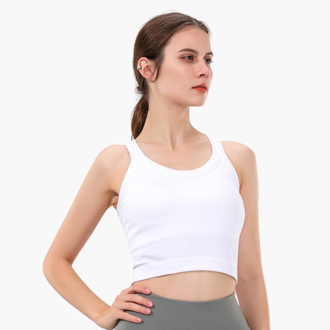 Przylegający sportowy top na ramiączkach z wycięciem typu racerback i prążkowaną powierzchnią.