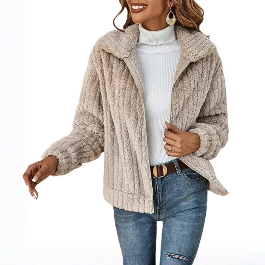 Damska kurtka z fakturą, z przednim zamkiem błyskawicznym i kołnierzem z zakładką