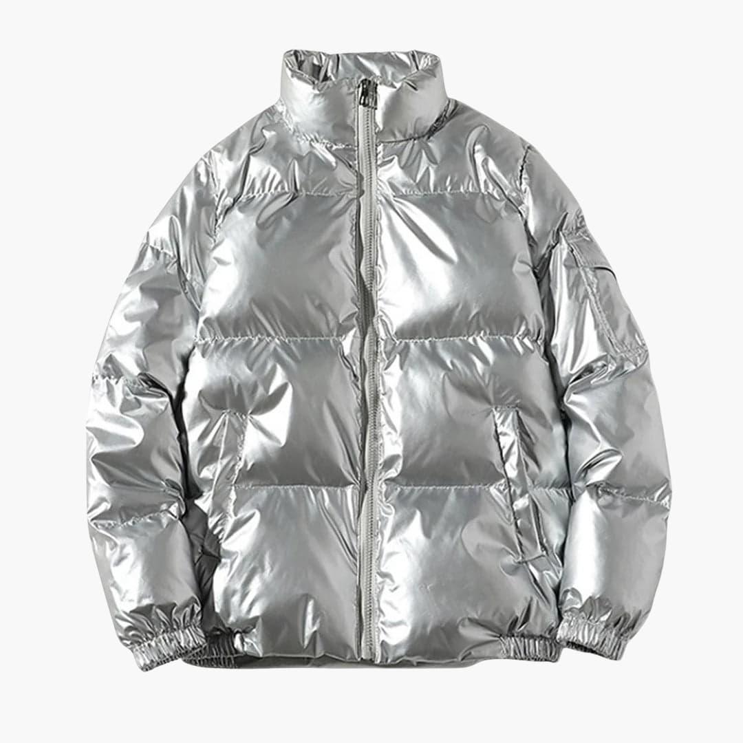 Men's Puffer Jacket with Zipper and High Collar