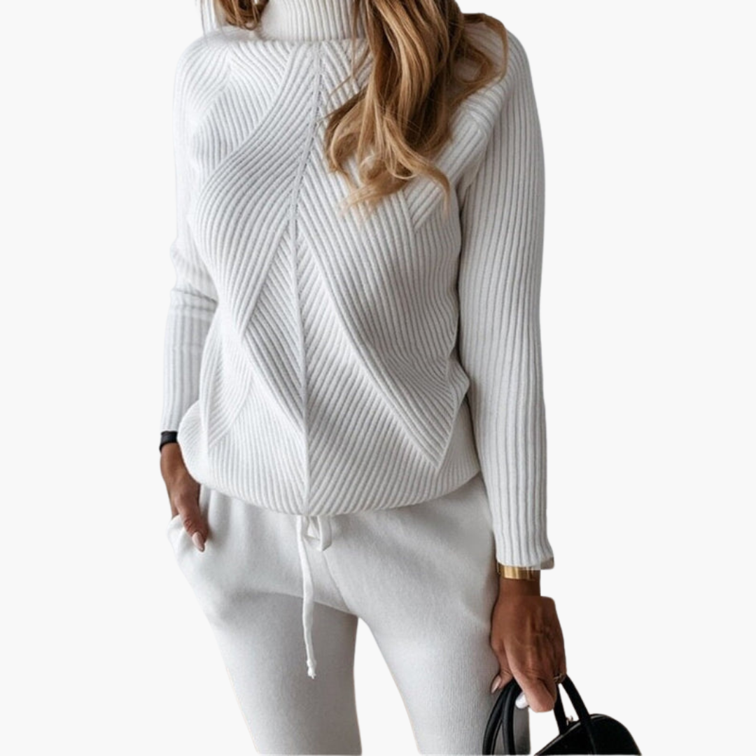 Women's set consisting of a high neck top with ribbed surface and matching pants